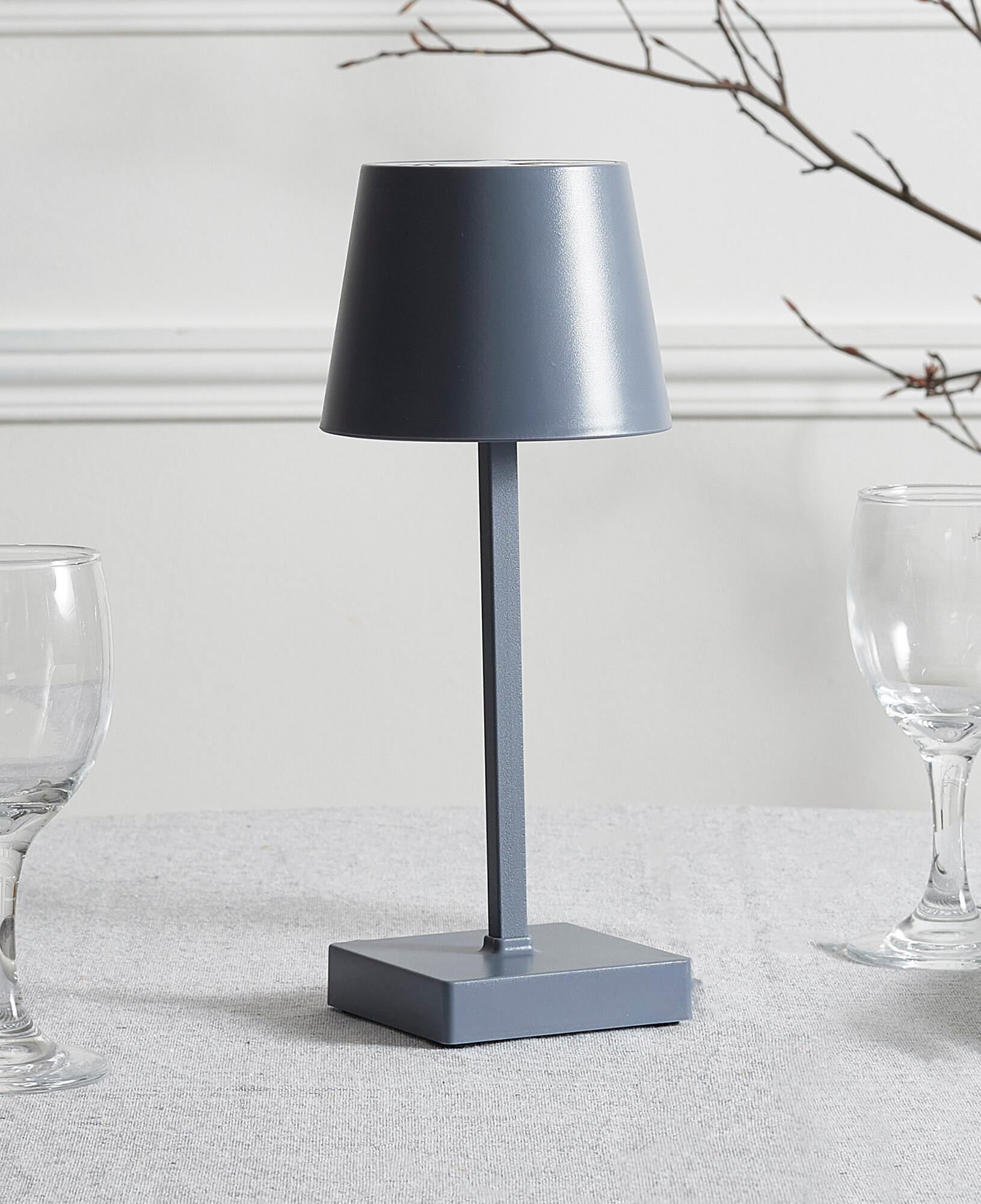 Lámpara de mesa táctil LED con control de la intensidad de la luz Lounge JE CHERCHE UNE IDEE con estructura gris pantalla gris luz cálida 3000K de pilas