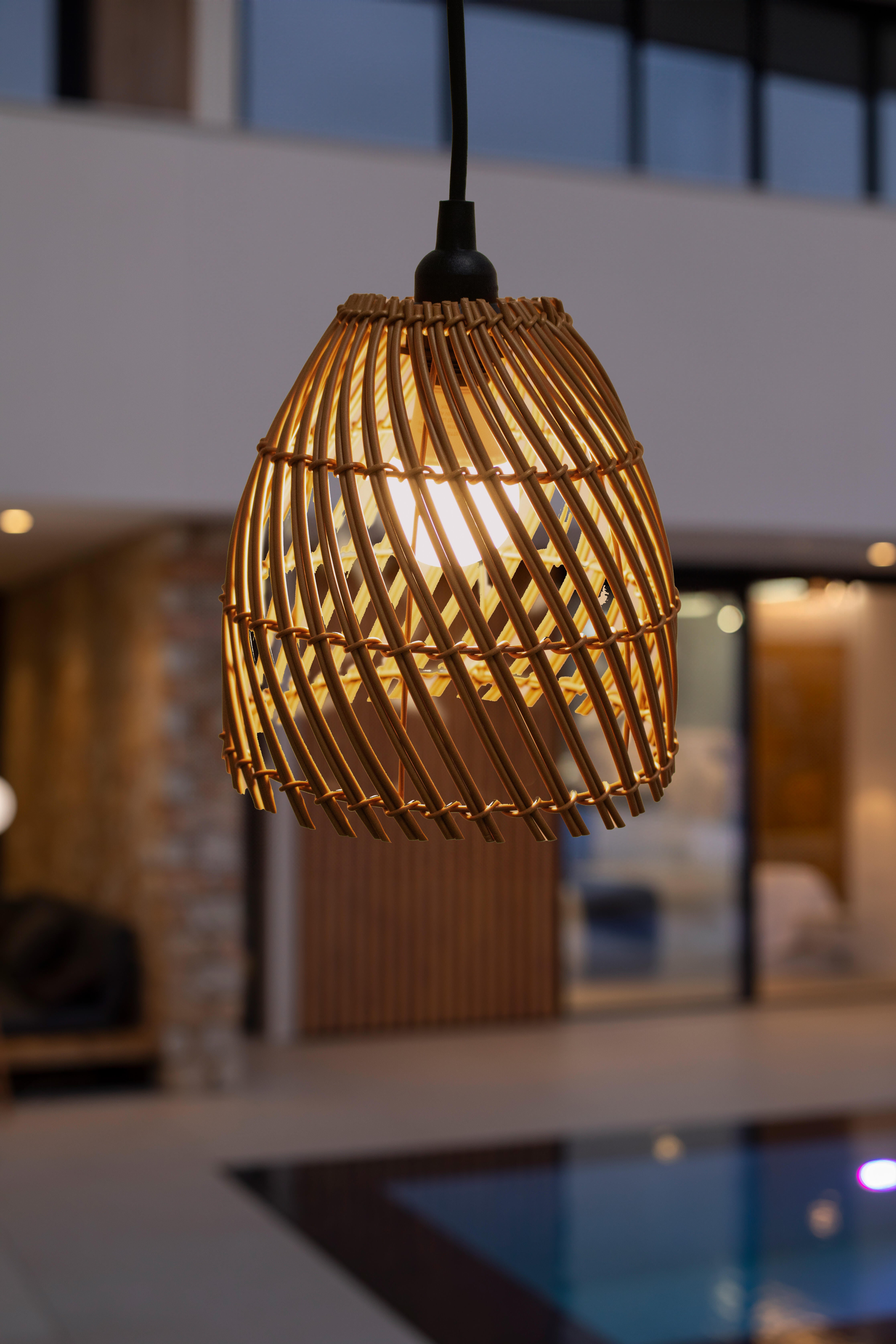 Lámpara de techo Zahora para exteriores de INSPIRE. Fabricada en policarbonato reciclado, esta lámpara de diseño elegante de 20 cm de diámetro utiliza una bombilla E27 (no incluida). Para un rendimiento óptimo, recomendamos utilizar las bombillas LEXMAN. Con una clasificación de protección IP54, la lámpara colgante ZAHORA es ideal para uso en exteriores, ya que es resistente a salpicaduras y polvo. Se puede conectar a una toma gracias a su cable de 3 metros. Opta por el estilo y la durabilidad con el colgante para exteriores ZAHORA de INSPIRE. Este producto viene con una garantía de 5 años. Medidas: 20 x 21 cm (ancho x alto).