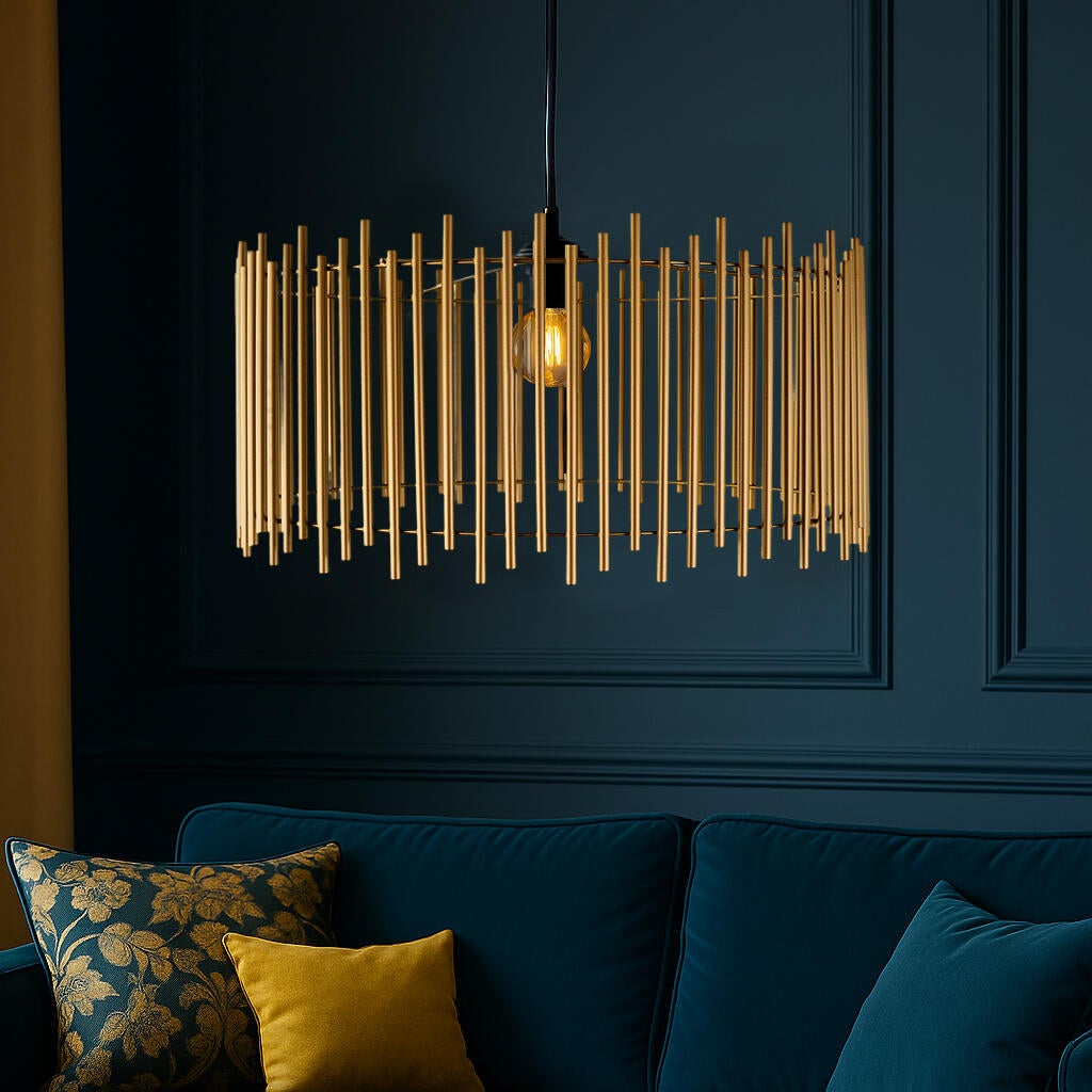 Publicado originalmente en Lámpara de techo colgante de acero dorada 1 luz E27 Nubia 15 cm