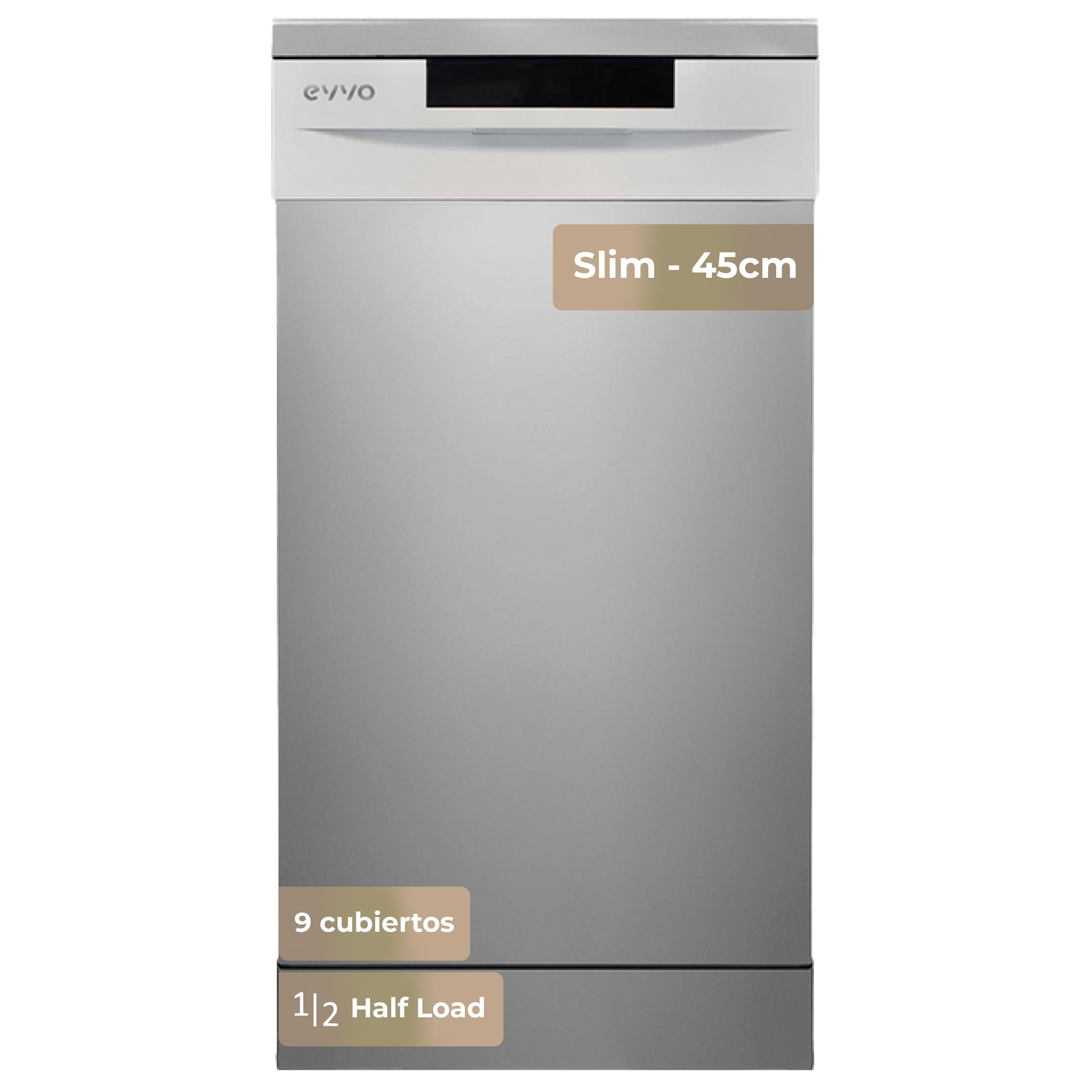 Lavavajillas EVVO D1X Slim (45 cm), 9 Cubiertos, 5 Programas, inox, Ancho 450 mm