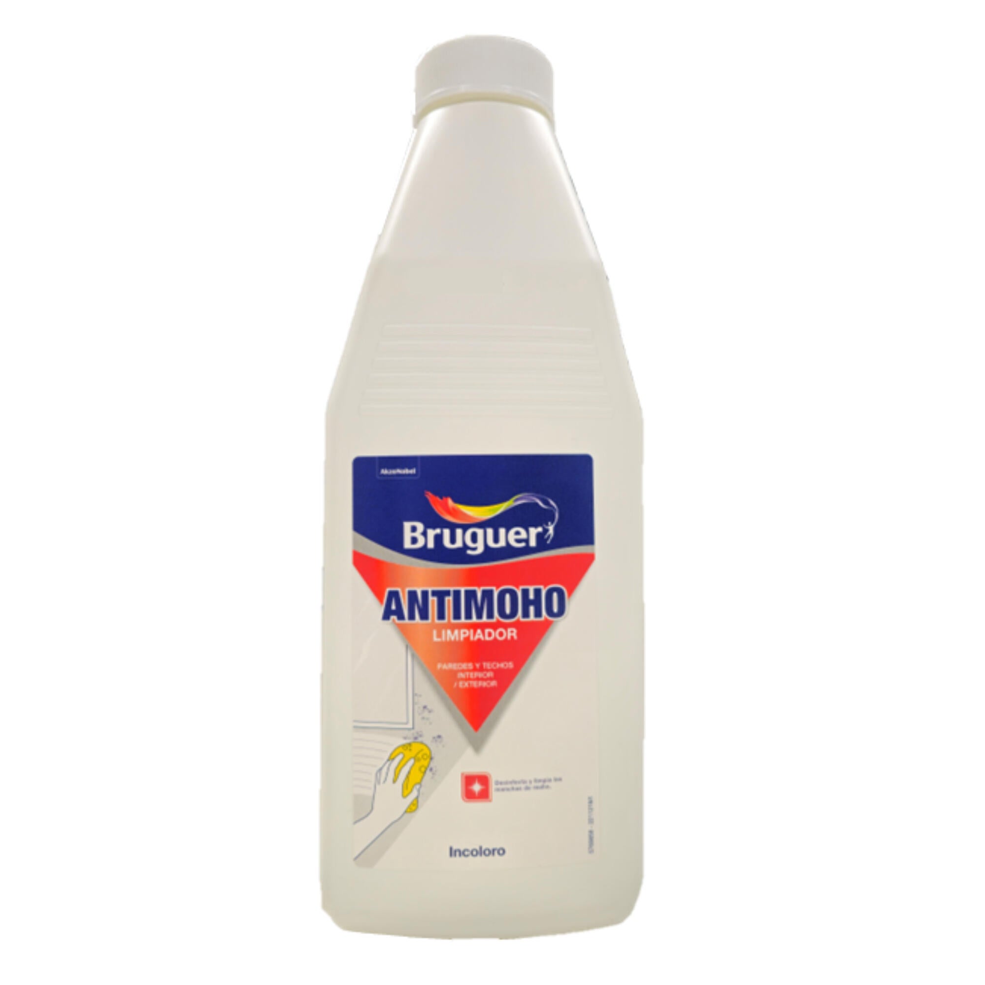 Bruguer Antimoho Limpiador es una solución desinfectante lista para usar en paredes revestidas con pinturas o azulejos y contaminadas con hongos o mohos. Para aplicaciones interiores y exteriores. Uso ambiental. Desinfección de contacto:aplicación en superficies duras, paredes y fachadas. Uso por el público en general. Líquido listo para su uso.