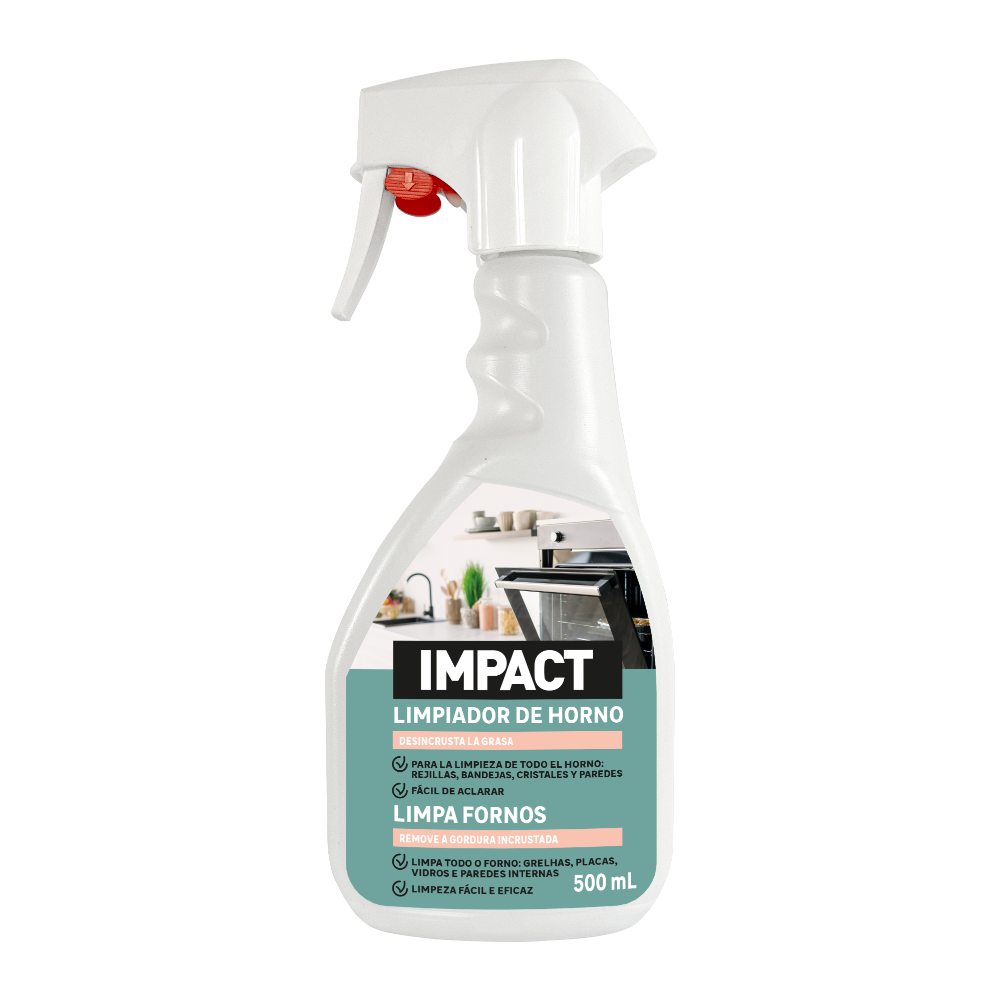 El limpiador de hornos Impact de 500 ml elimina a fondo los restos de grasa de todas las superficies de su horno: placas, parrillas, cristales, paredes, etc. Actúa en 5 minutos.