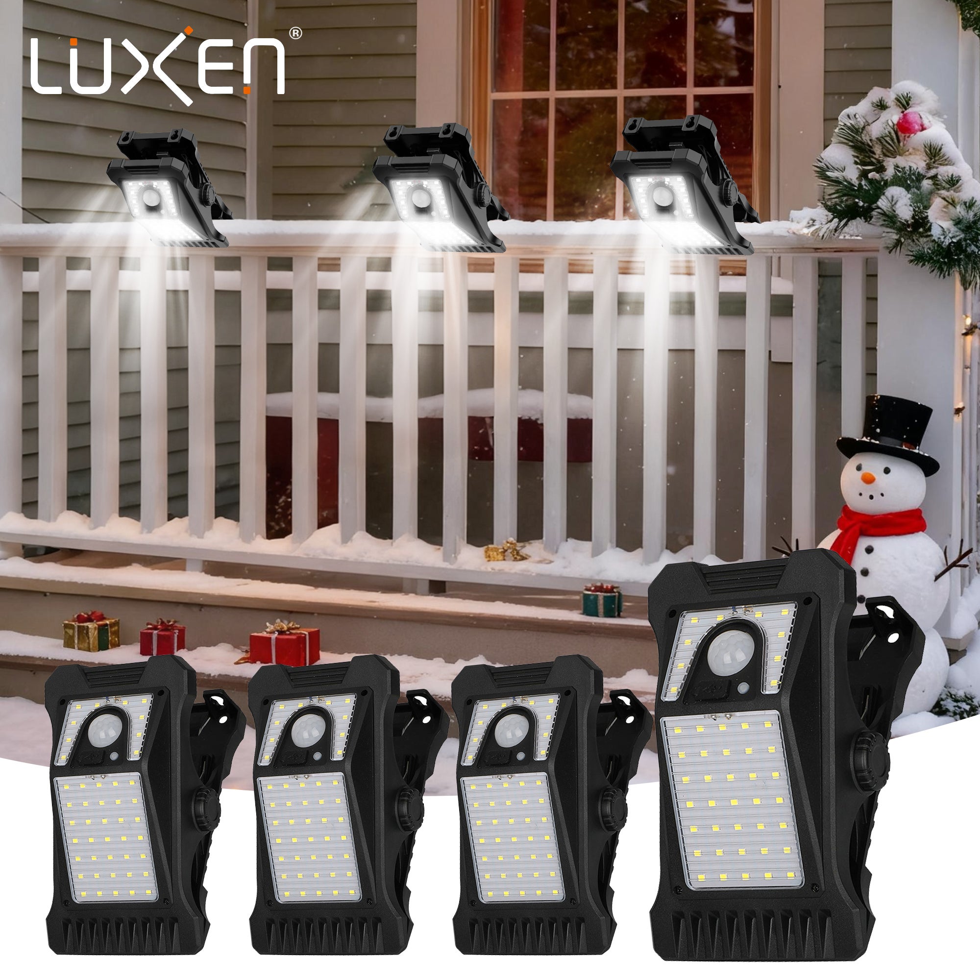 LUXEN Luces Solares con Clip para Exterior, Sensor de Movimiento, 6500K Luz Fría, Luz de Seguridad con Carga USB