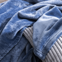 Manta franela New Kieran rectangular INSPIRE poliéster liso azul de 200x220 cm