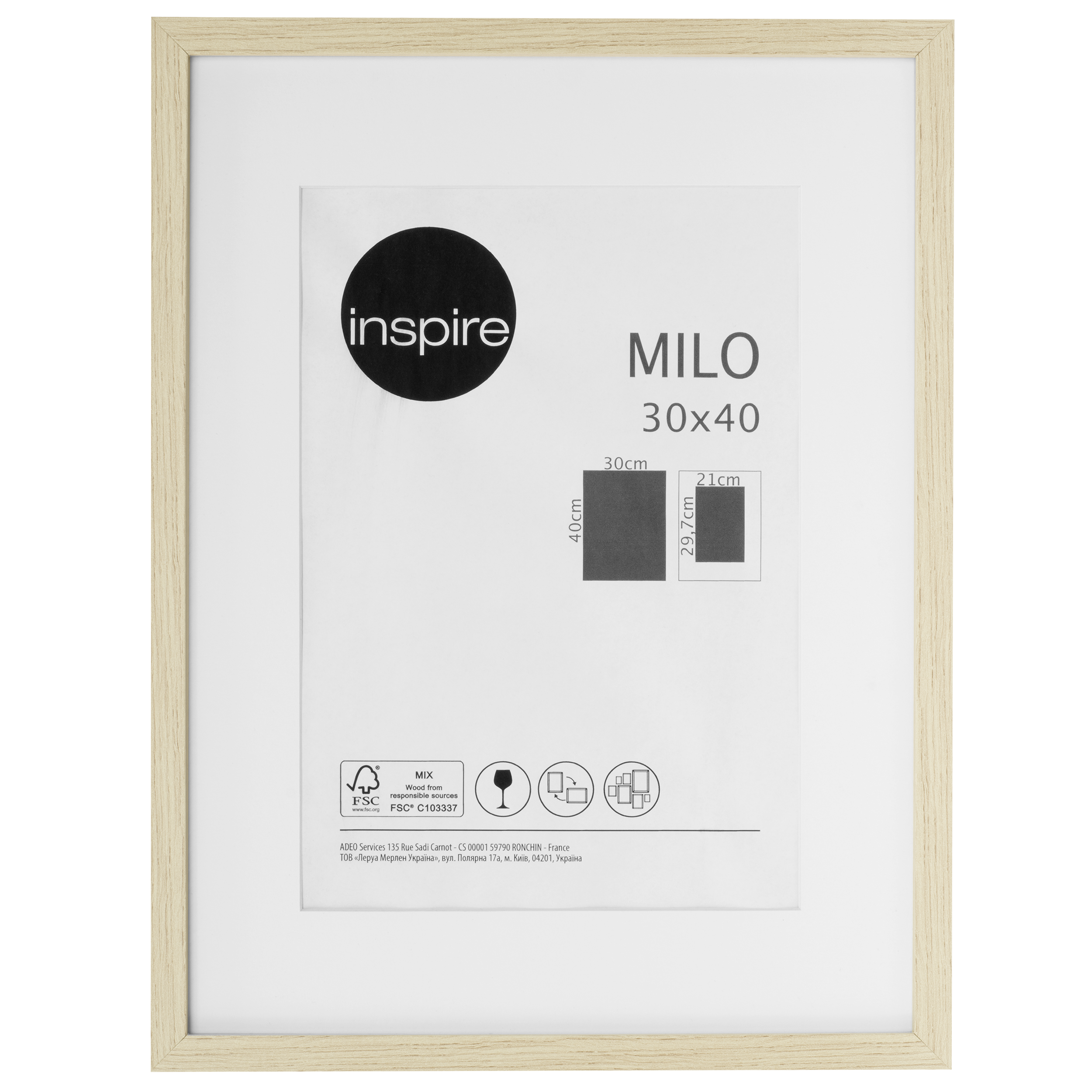 Marco con passe partout INSPIRE Milo roble 30 x 40cm