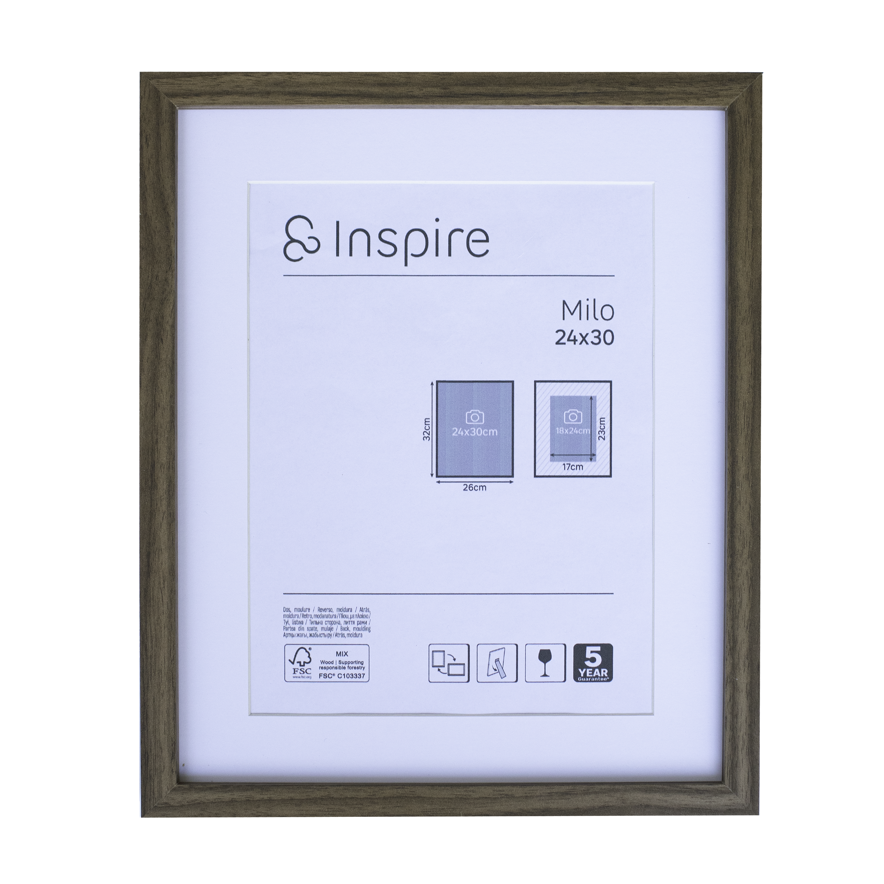 Marco para cuadro Inspire Milo con acabado de color madera de nogal. Ideal para colocar todos instantáneas favoritas y decorar con ellas el interior de tu hogar. Ofrece 3 años de garantía. Disponible en otros colores. Medidas: 18 x 24 cm (ancho x alto).