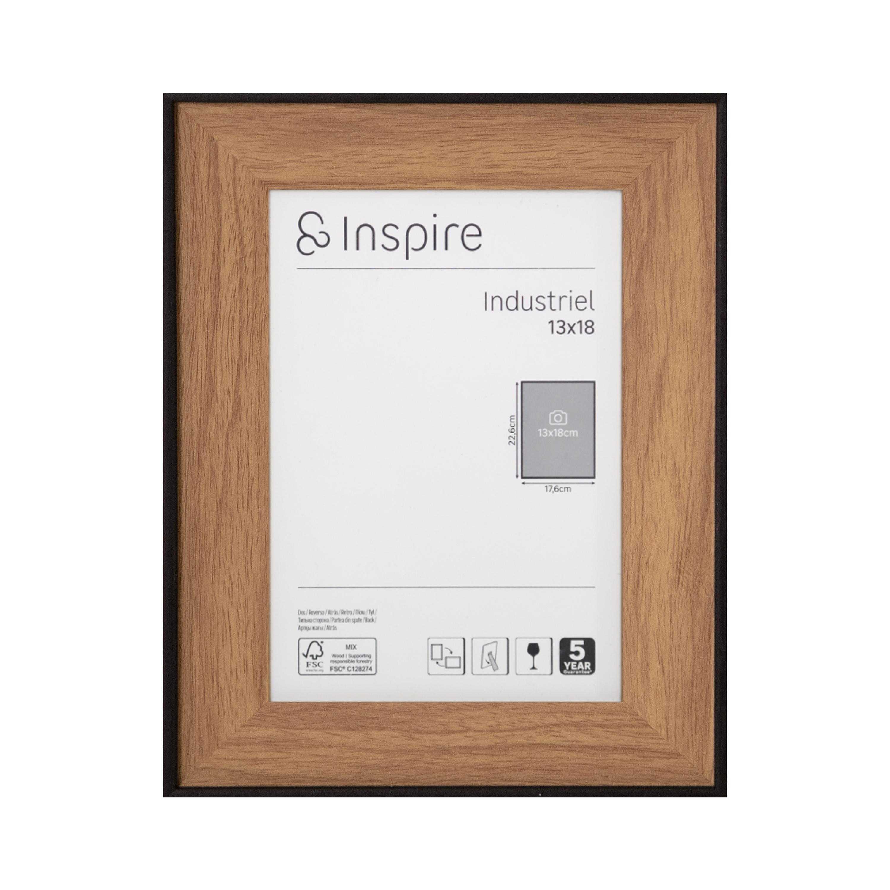 Marco para cuadro Inspire Industriel fabricado en plástico de color marrón y MDF. Cuenta con un cristal de protección en la parte frontal. Ideal para colocar todos instantáneas favoritas y decorar con ellas el interior de tu hogar. Ofrece 5 años de garantía. Cuenta con el sello FSC, que certifica que la madera proviene de bosques gestionados de forma sostenible y respetuosa con el medioambiente. Medidas: 13,4 x 22,4 cm (ancho x alto).