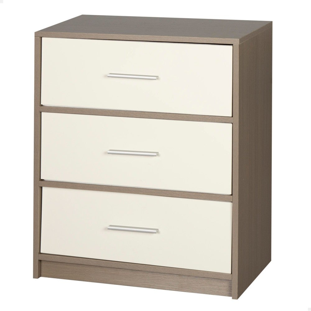 Max Home Mesita de noche blanca y madera 3 cajones de tela 58x30x70 cm