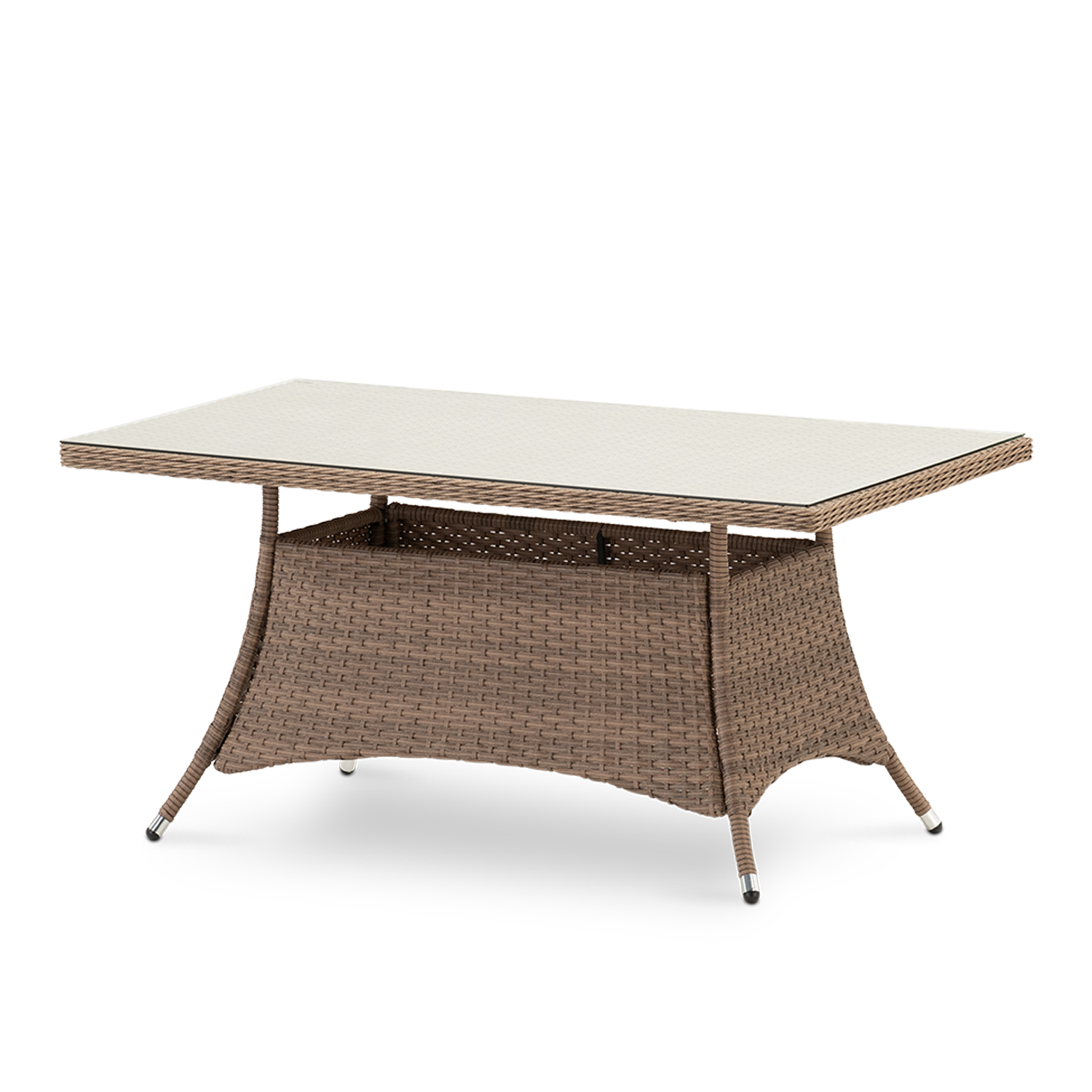 Más información Este enlace se abrirá en una nueva ventanaMesa alta de exterior fabricada con estructura de aluminio y ratán sintético trenzado a mano en color beige oscuro marronoso y sobre de vidrio templado de 5mm de espesor. Medidas: 140x80x68cm. Puede combinarlo con los distintos elementos de la familia Bolonia para completar su terraza o jardín y que no falte detalle.