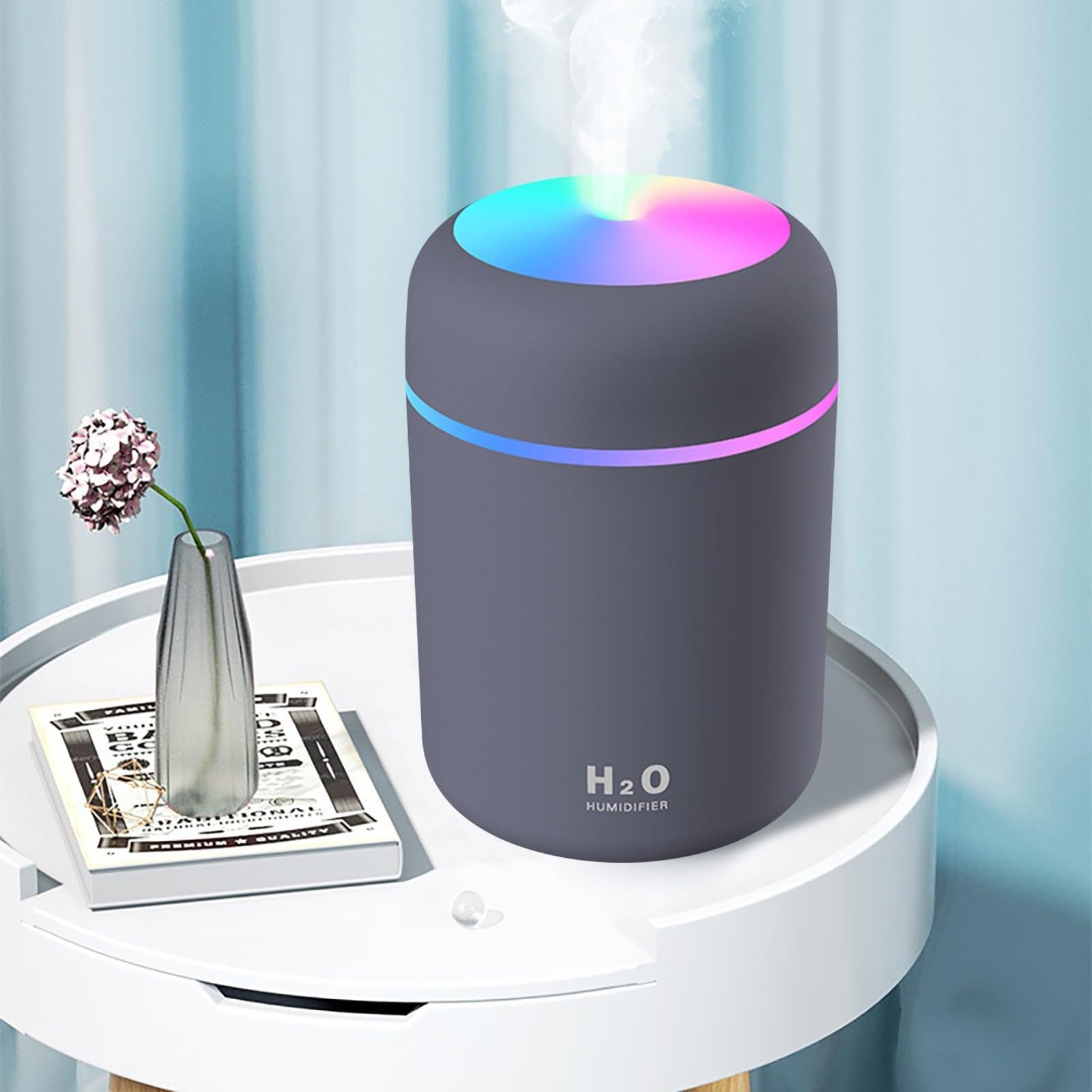 Mini humidificador, humidificador recargable de 300 ml con luz LED nocturna de color, 2 modos de niebla, <30 dB, para automóvil, oficina, hogar (gris)