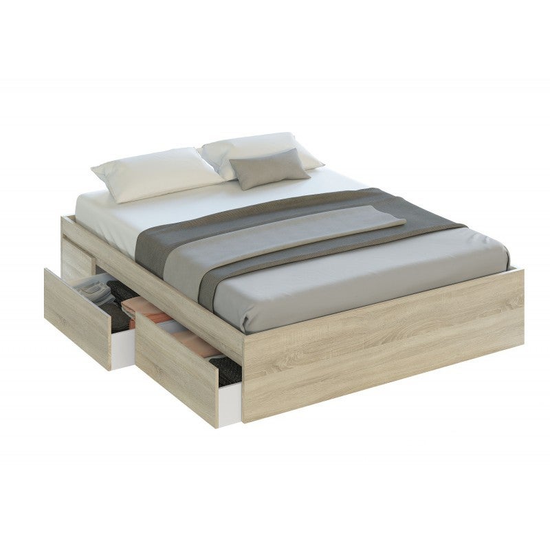 Mobelcenter - Cama de Matrimonio con 4 cajones Kendra - Color Roble Canadian - Ancho: 156 cm x Fondo: 196 cm x Alto: 37 cm (Roble Canadian) (1104)
