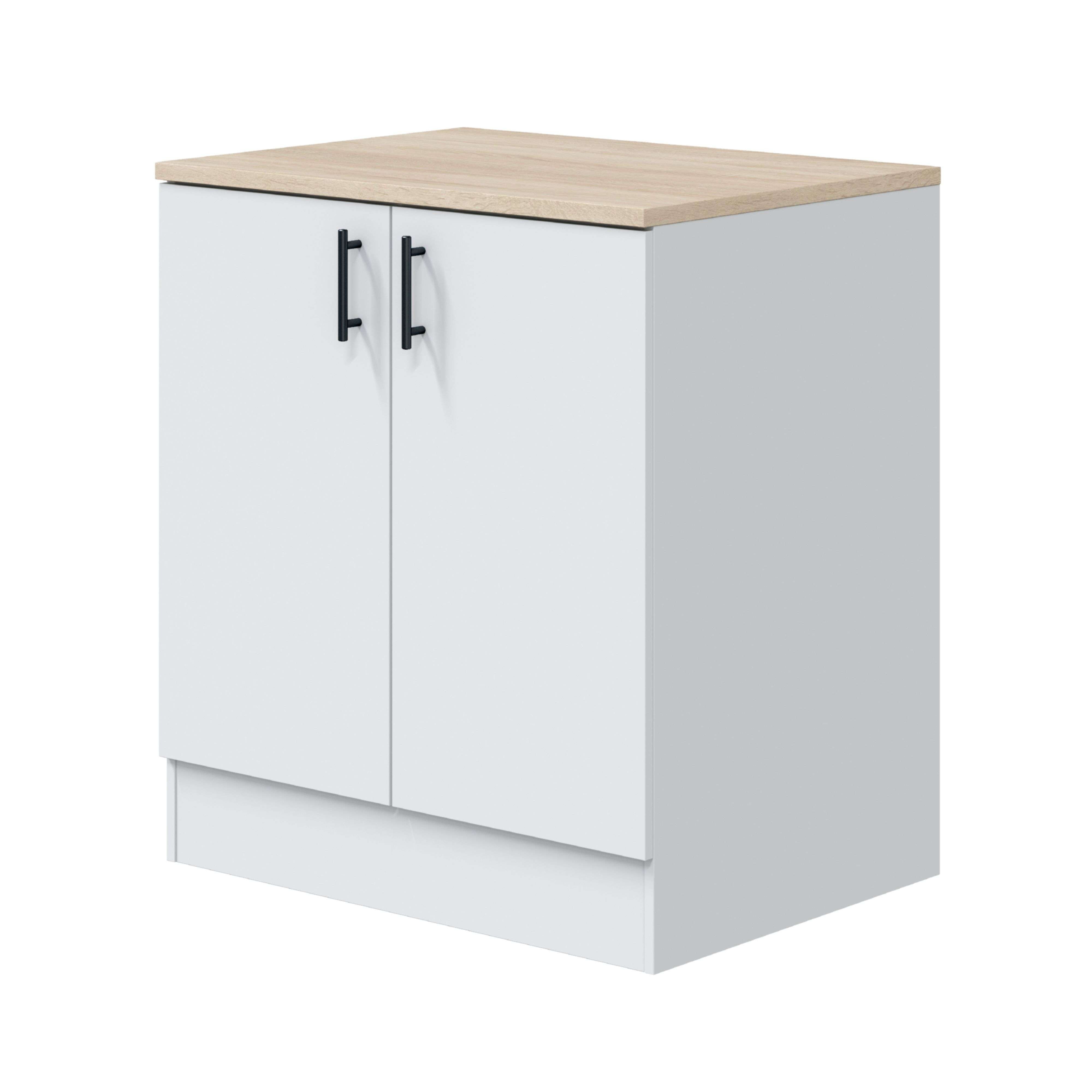 Módulo Inferior Cocina Fregadero 2 Puertas Kira en Blanco Brillo y Roble Canadian 80x90x60 cm