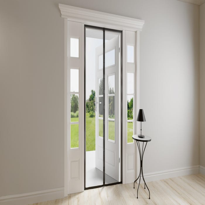 Mosquitera cortina puerta magnética pvc negro tela poliester 100x230 cm Isoxa