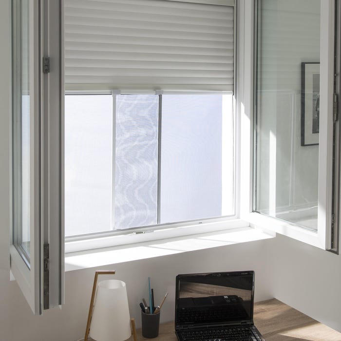 Mosquitera extensible para ventana Isoxa fabricada en aluminio color blanco con tela de fibra de vidrio en color gris. Encajable en la guía de la persiana. No necesita tornillos para instalación. Su sistema extensible permite regular su ancho (de 70 hasta 130cm), una vez encajada en las guías de la persiana y haciendo esta presión sobre ella conseguirás un hogar protegido de insectos. Extensible hasta 140 cm. Medidas: 70 x 50 cm (alto x ancho).