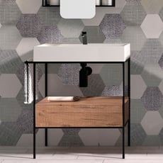 Mueble de baño suspendido con un cajón fabricado en madera MDF con acabado en color roble. Es perfecto para ayudarte a guardar y organizar tus productos de aseo y cuenta con sistema de cierre progresivo para evitar que el frente del cajón golpee sobre la estructura del mueble. Se fija en la pared. Medidas: 90 x 40,5 x 48 cm (ancho x alto x fondo).
