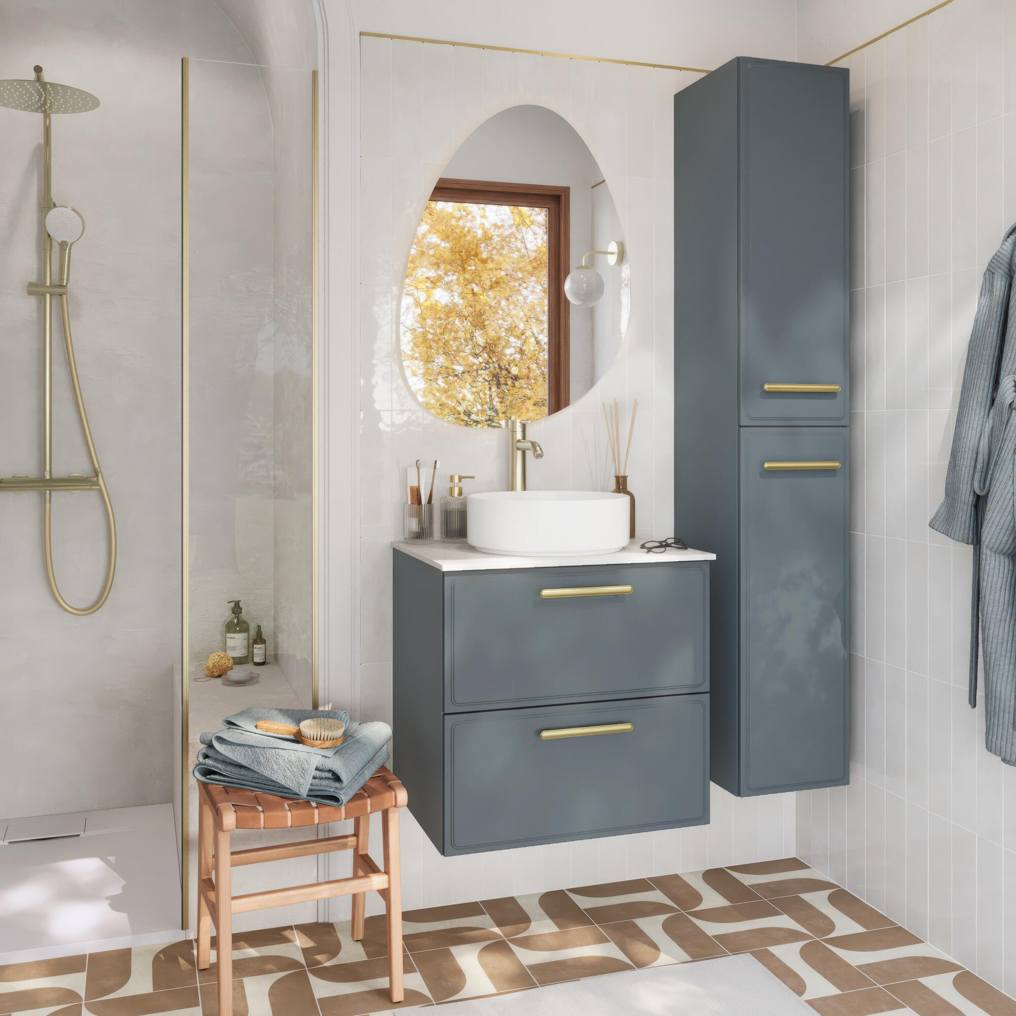 Conjunto de mueble bajo lavabo Pearl de 60 cm en gris verdoso mate con lavabo Studio blanco y encimera Pearl con acabado marmoleado blanco. El mueble de estilo neoclásico atemporal mide: 60 cm de ancho × 48 cm de profundidad × 57,8 cm de alto, ideal para baños de cualquier tamaño. Almacenamiento optimizado: cajón superior completo: sin orificio para el sifón, ideal para productos de uso diario. Cajón inferior de gran capacidad: almacenamiento vertical para tus productos de higiene embotellados. Cajones con cierre suave: funcionamiento discreto y fluido. Instalación: se entrega en kit para un fácil montaje. Requiere montaje en pared con tornillos y tacos adecuados para tu pared (no incluidos). El lavabo de sobreponer Sensea serie Studio Ceramic de forma redonda está fabricado en porcelana de color blanco con acabado mate, ideal para colocar con grifos de caño alto. Cuenta con tratamiento antibacteriano y antifúngico y orificio tipo desagüe de clic-clac con rebosadero. No dispone de perforación para instalar la grifería. Ofrece una garantía de 5 años. Medidas del lavabo: 37 x 12 cm (diámetro x alto).