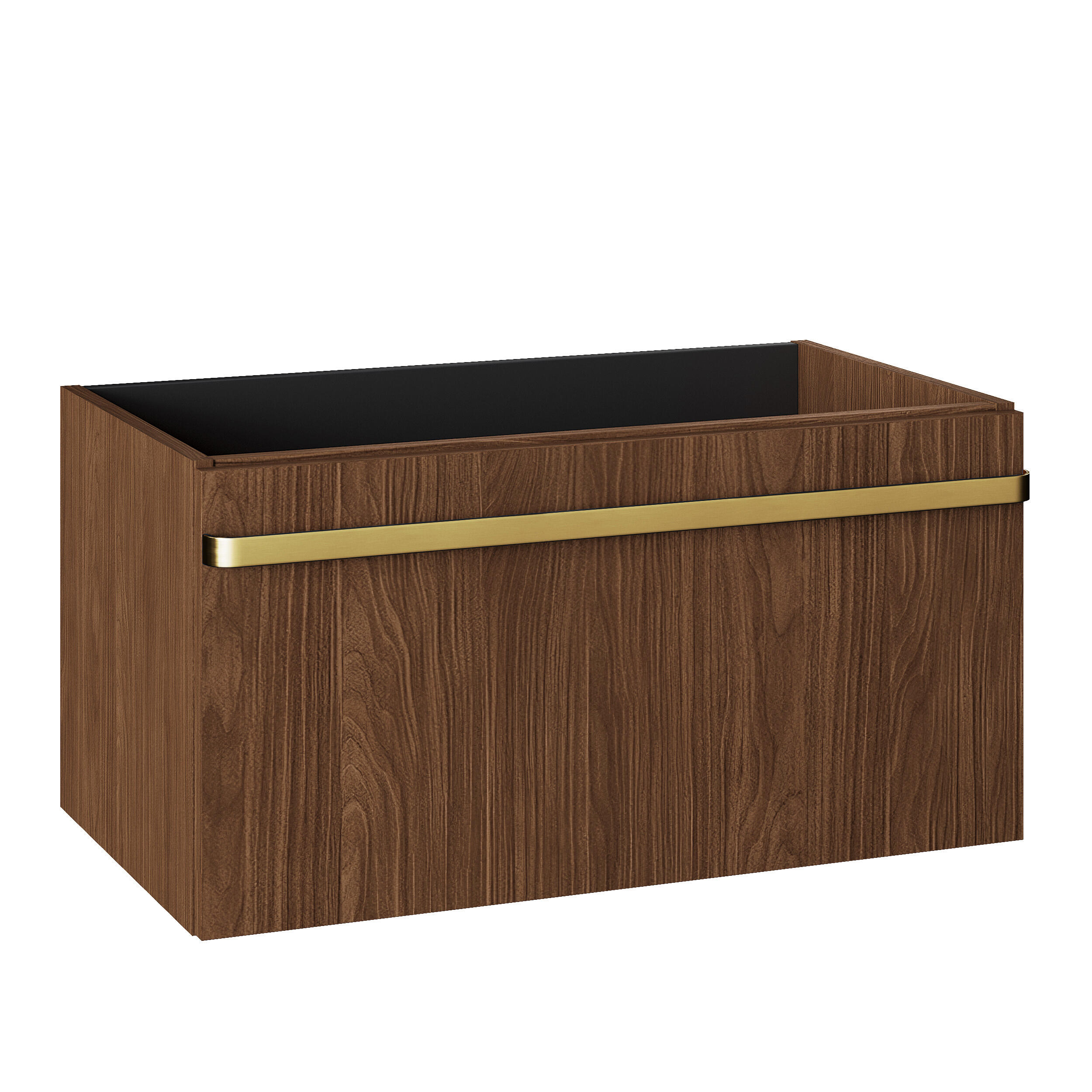Mueble LOA A80xP45xH40 CM en acabado Nogal Lincoln, estructura y frente de tablero de aglomerado con melamina de 19 mm. Un cajón con guías Hettich Quadro V6 con sistema de cierre ralentizado soft-close. Tirador de acero en acabado oro brillo. Estilo elegante junto con una grande capacidad de almacenamiento.