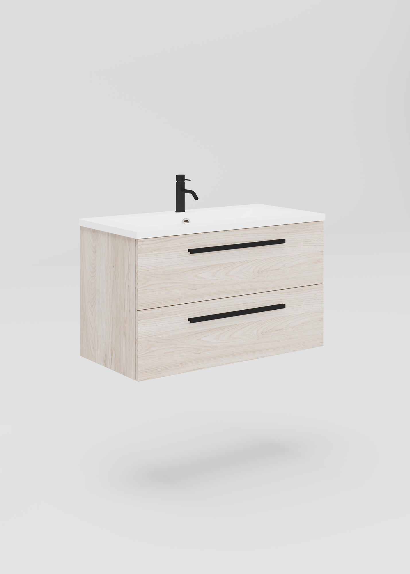 Mueble de baño modelo Madrid con 2 cajones, fabricado en tablero de partículas aglomeradas de 16 mm de espesor y con acabado en aspecto madera. Es para fijar a pared y los cajones tienen cierre amortiguado y apertura con tiradores negros. Su instalación es muy sencilla, ya que viene montado de fábrica. No incluye lavabo ni encimera. Cuenta con el sello PEFC, que certifica que la madera proviene de bosques gestionados de forma sostenible y respetuosa con el medioambiente. Medidas: 80 x 46,6 x 45 cm (ancho x alto x fondo).
