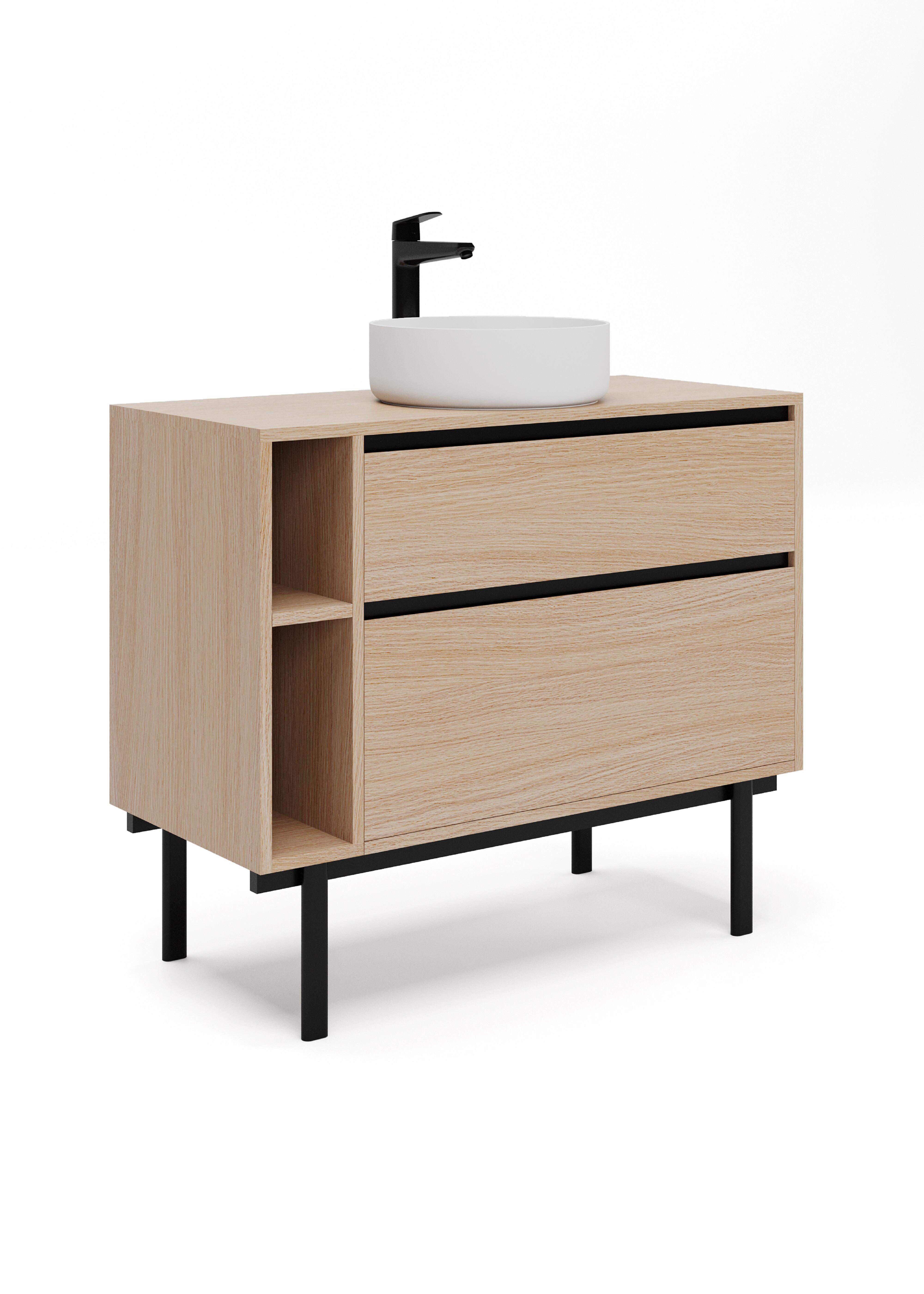 Mueble de baño modelo Tono. De líneas discretas y minimalistas, aporta un estilo moderno pero funcional a tu set de baño. Disponible en tres acabados (blanco mate, Nogal y Velázquez). Cuenta con el sello PEFC, que certifica que la madera proviene de bosques gestionados de forma sostenible y respetuosa con el medioambiente. Producto fabricado en España con 3 años de garantía.