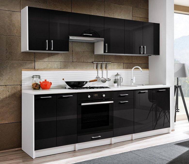 Ancho de los armarios inferiores en el conjunto: 240 cm. Altura: 82 cm. Profundidad: 45 cm. El set incluye: 4 muebles.