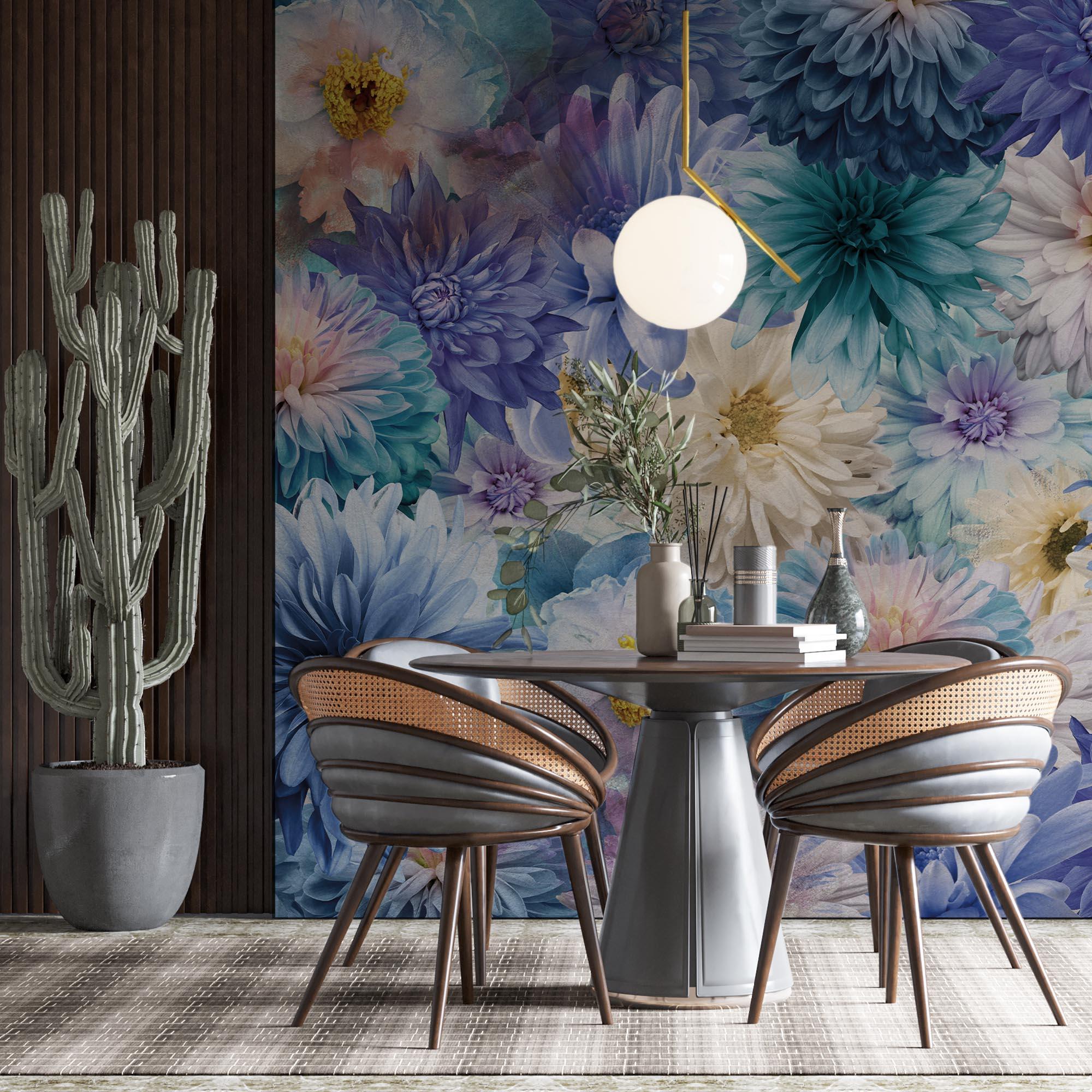 Mural adhesivo Pvc texturado limpieza con paño húmedo naturaleza Floral Kael azul 132 x 260 cm MOTIF