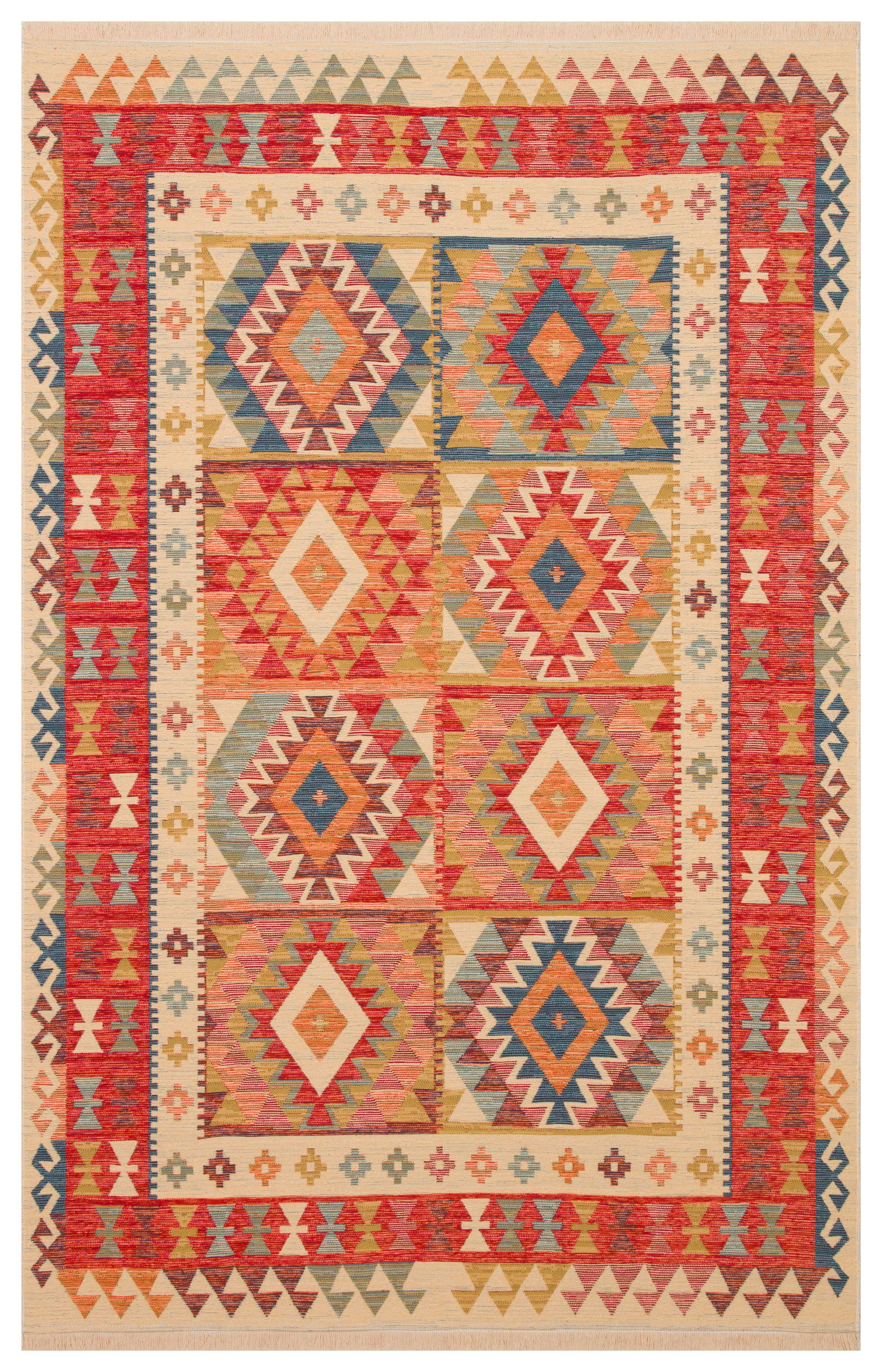 OTTOMAN - ALFOMBRA KILIM NOMADA NMD 903 RED- kilim auténtico suave al tacto, reversible y lavable, elaborados con algodón reciclado. Varias medidas.