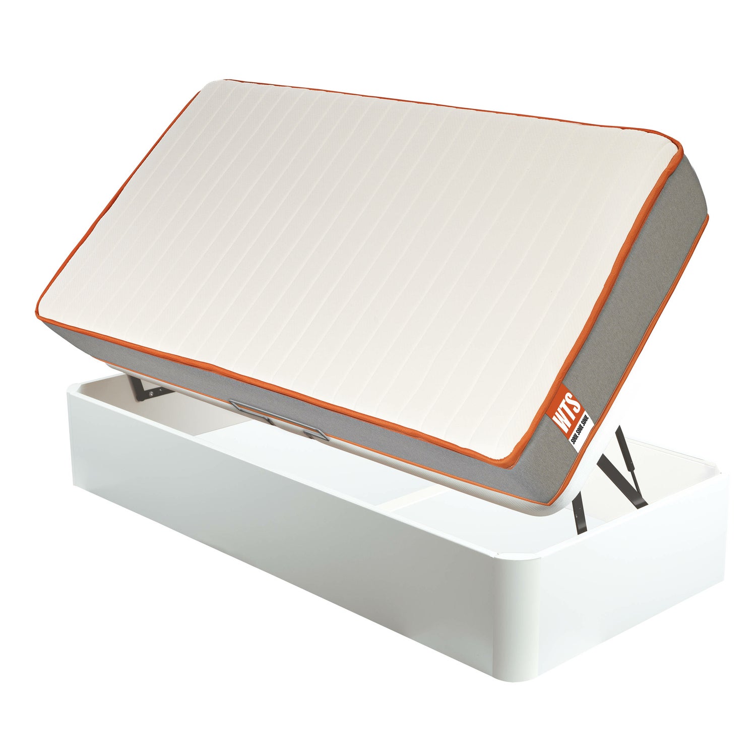 El canapé, con su práctico sistema de apertura lateral, facilita el acceso a un amplio compartimento interior, ideal para guardar ropa de cama, juguetes o maletas, incluso en espacios reducidos. Su estructura robusta no solo ofrece una amplia capacidad de almacenamiento, sino que también sirve como base estable, alargando la vida útil del colchón.