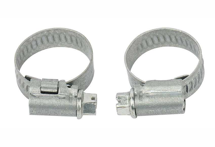 Pack de 2 abrazaderas fabricadas en acero inoxidable con acabado de color gris plata de 12 a 22 mm. Ofrece 3 años de garantía.