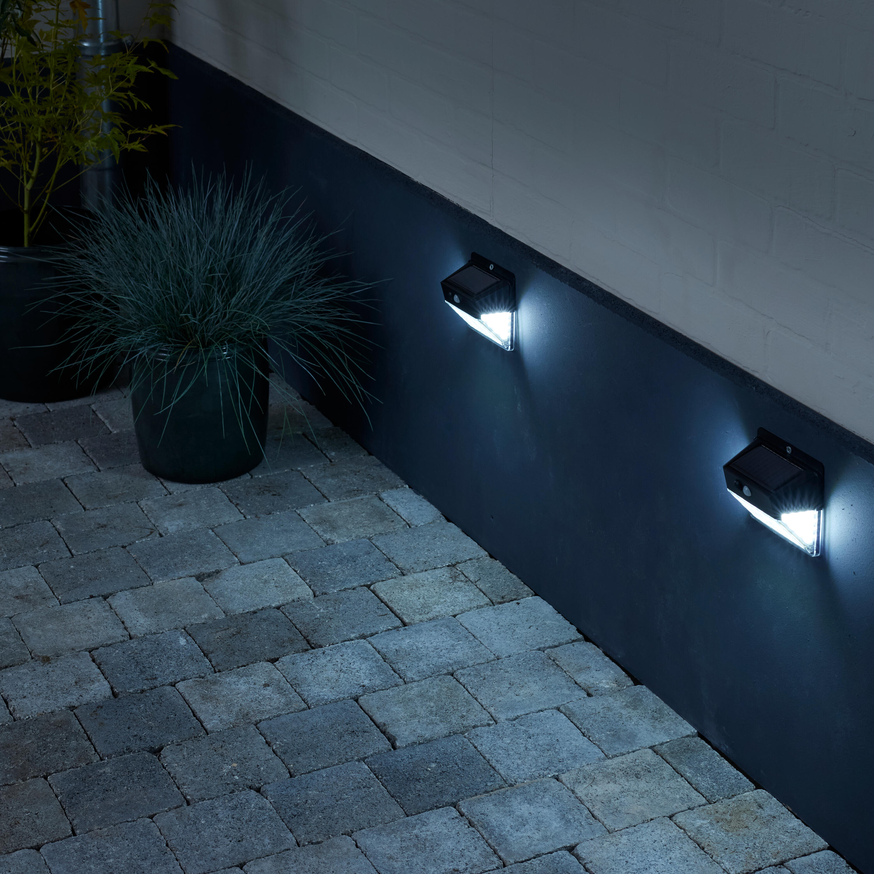 Pack de 2 apliques solares de exterior luz LED blanco frío OS-A148X2 negro con sensor crepuscular y detector de movimiento IP44
