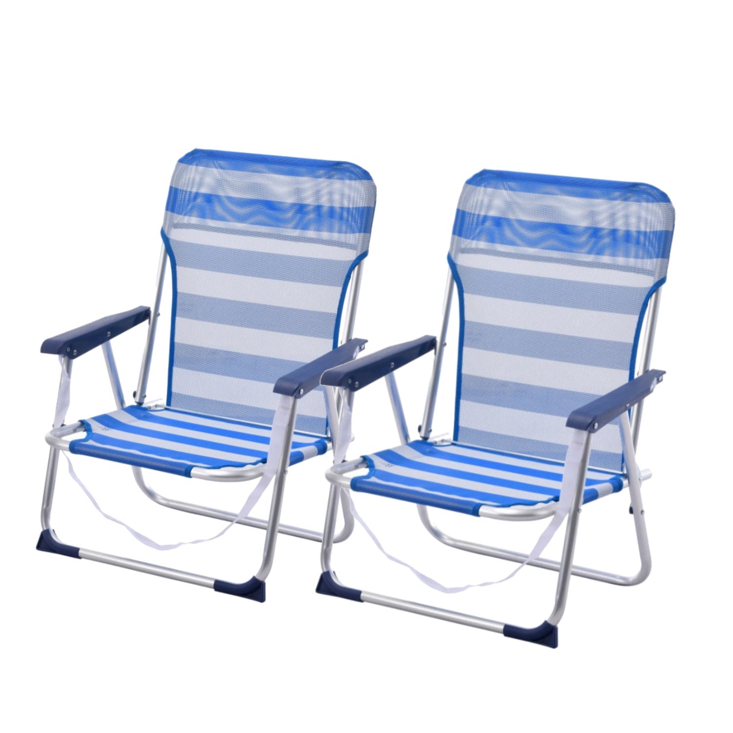 Pack de 2 Sillas Playa Infantil de Asiento Bajo de Aluminio Silla Plegable de 48x23x70cm Raya Azul