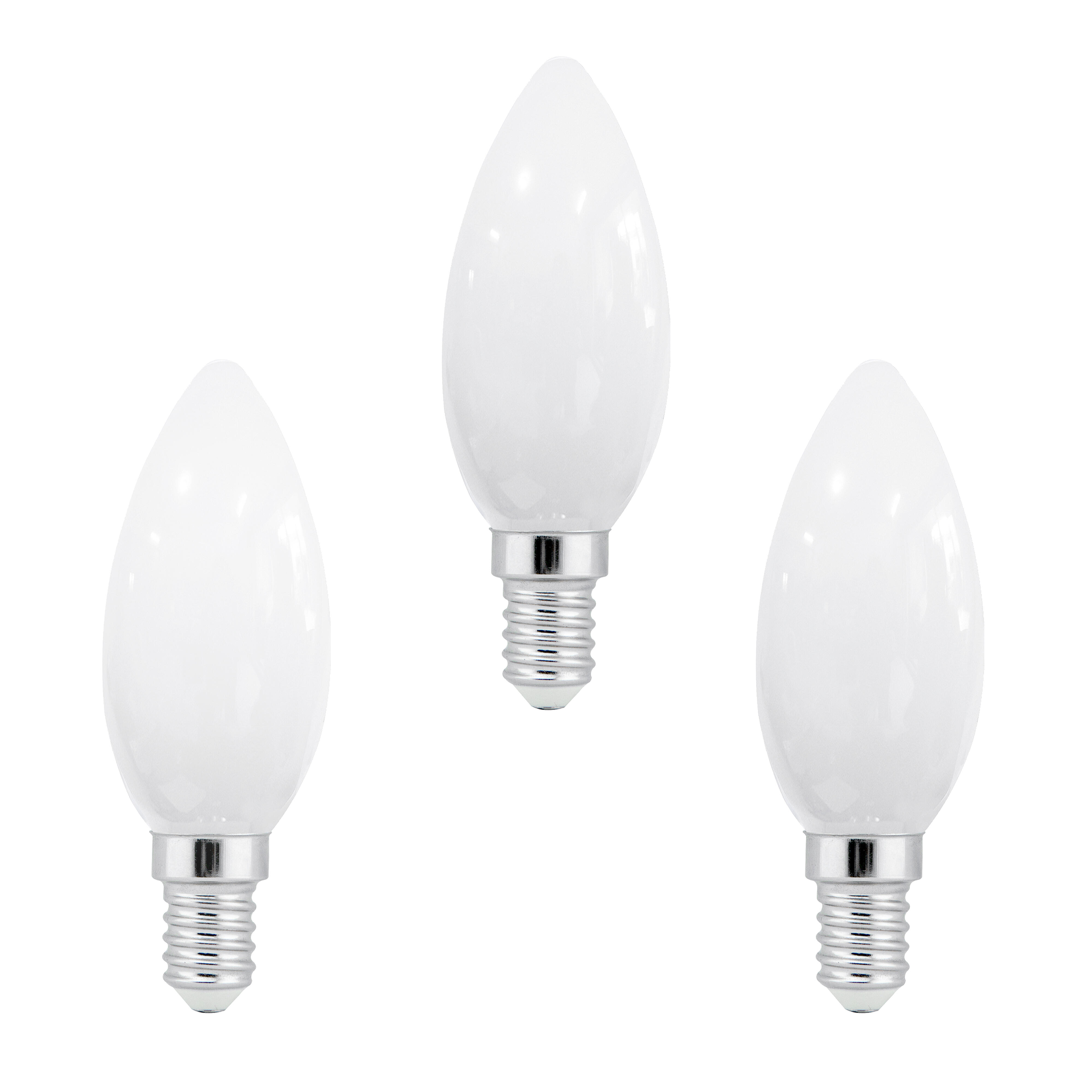 Pack de 3 bombillas de forma de vela. Fabricadas en cristal de color blanco, cuentan con una potencia de 6 W y casquillo E14. Su tecnología de filamento led aporta una luz de color blanco frío de 6.000 K y un flujo luminoso de 800 lúmenes de intensidad. Con un tipo de encendido instantáneo, cuenta con un área máxima de iluminación de 6 m² y un ángulo de iluminación de 360º. Tiene una vida útil de hasta 25.000 horas y 15.000 ciclos de encendido. Etiqueta energética: E. Índice de protección IP20 (uso en interior). Cuenta con una garantía de 5 años.