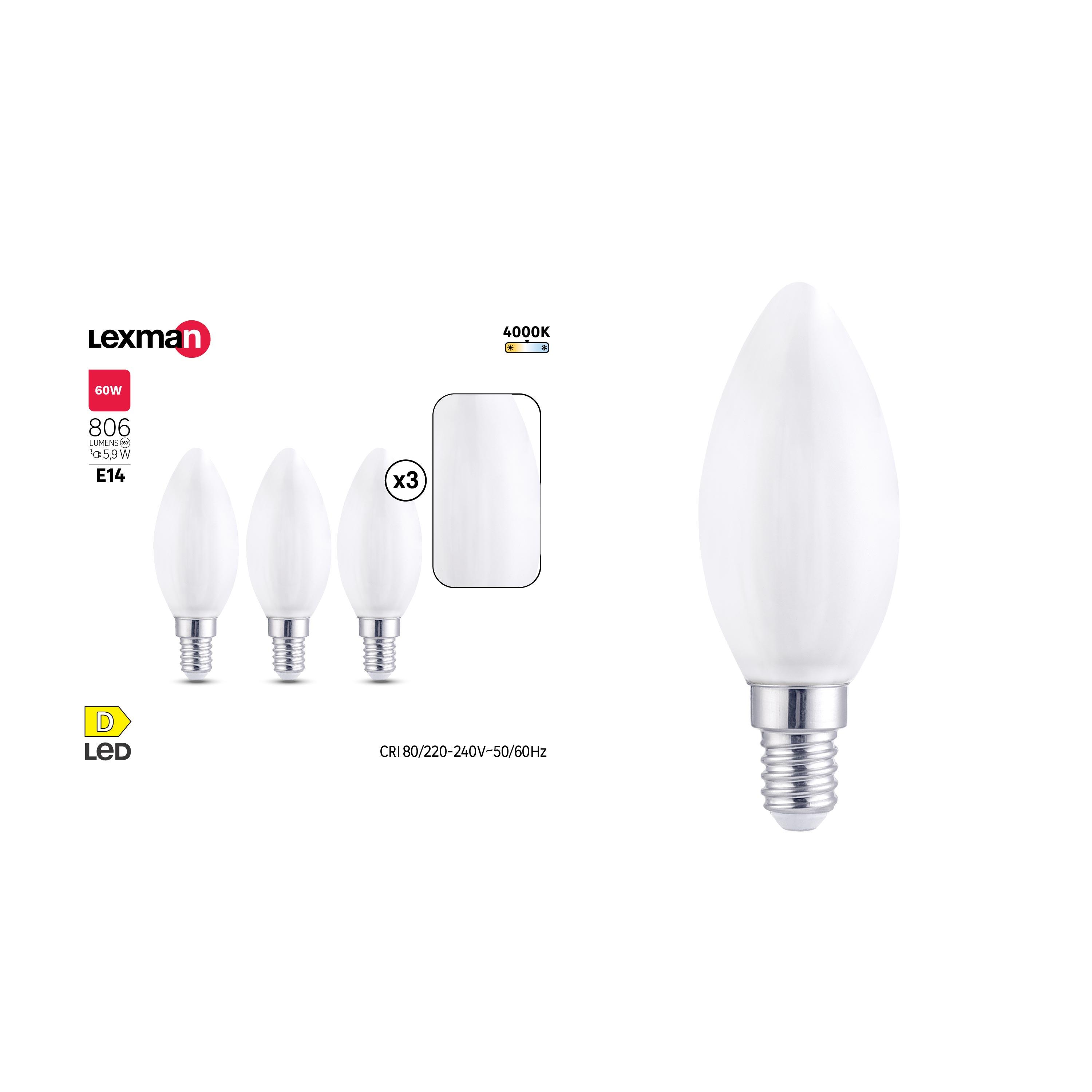 Pack de 3 bombillas LED filamento E14 806 lúmenes 5.9W color de la luz blanco neutro 4000K clase energética D