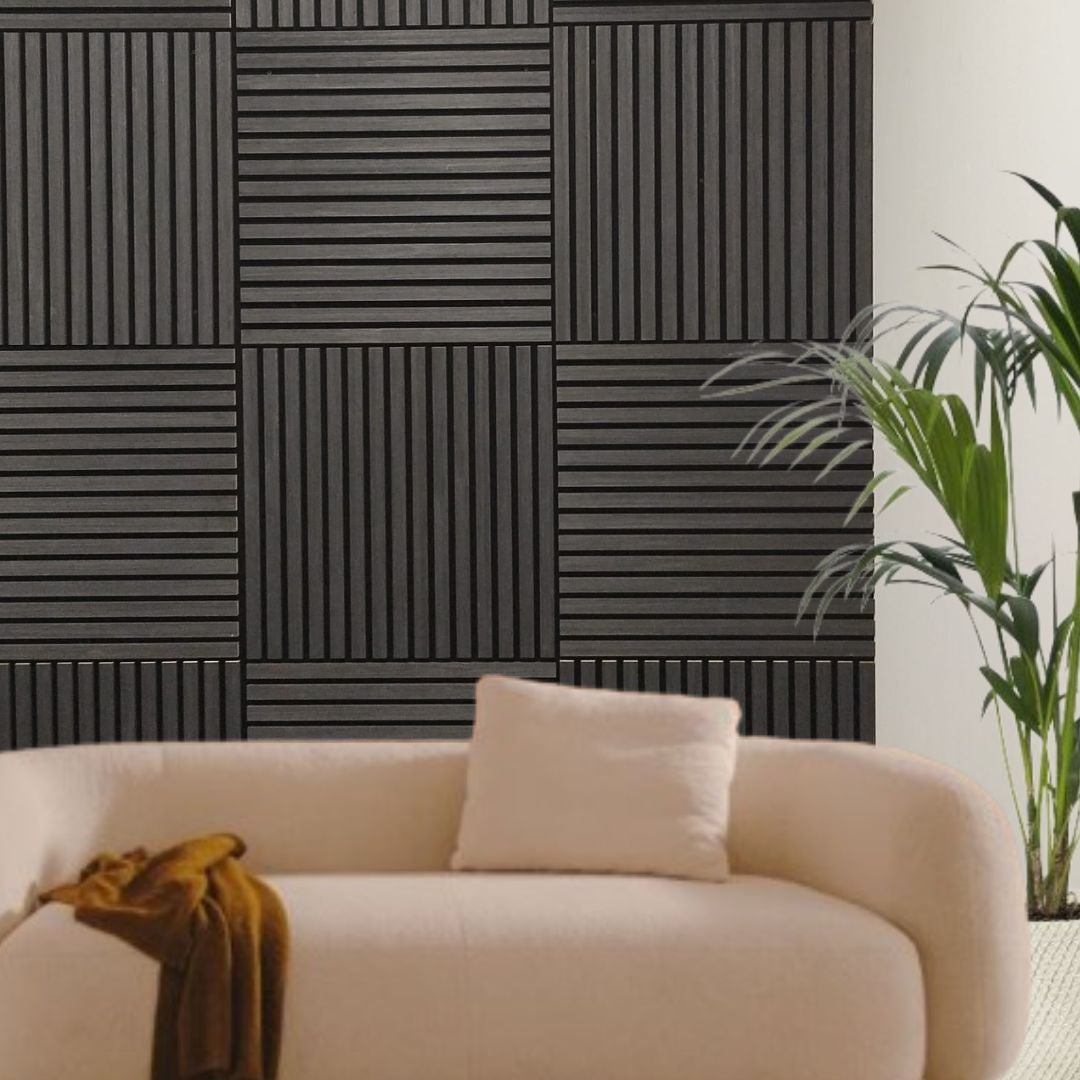 Paneles Isodeco 3D acústicos HDF de madera gris oscuro 60x60x2,2cm