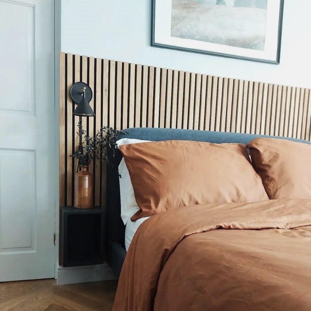 Nuestros paneles de pared tienen una capa de tres chapas de madera roble auténtico, que está pegada sobre el HDF. Se trata de una capa fina que ha sido cortada con cuidado. Esto se puede ver y sentir claramente, debido a la estructura, esta pared de listones parece real. Son recomendados para estancias interiores, desde estilos de hogar minimalistas hasta clásicos.