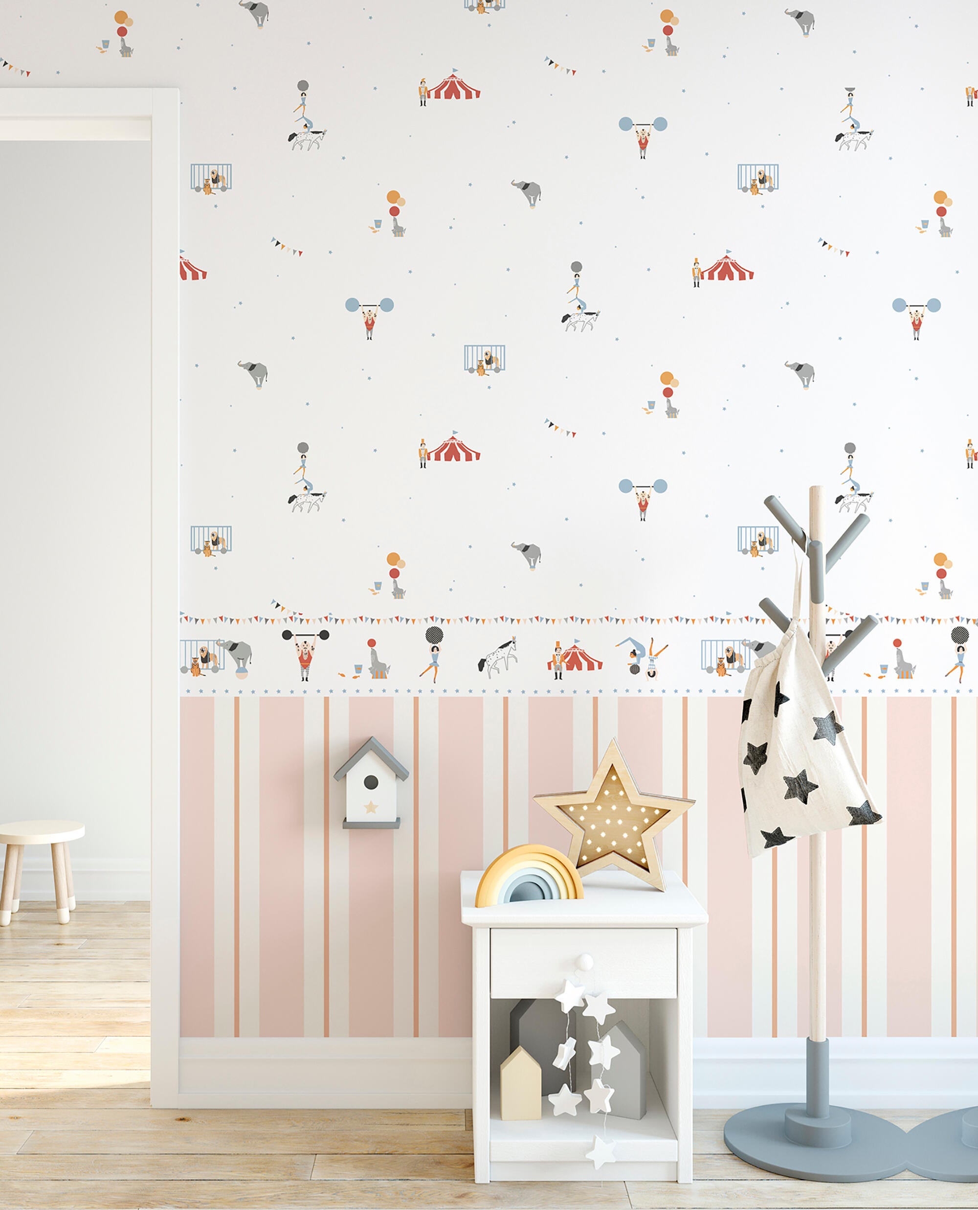 Papel pintado TNT de fácil colocación ideales para habitaciones de niños, con rayas para combinar con la decoración infantil, creados por la diseñadora MiMi Lou.