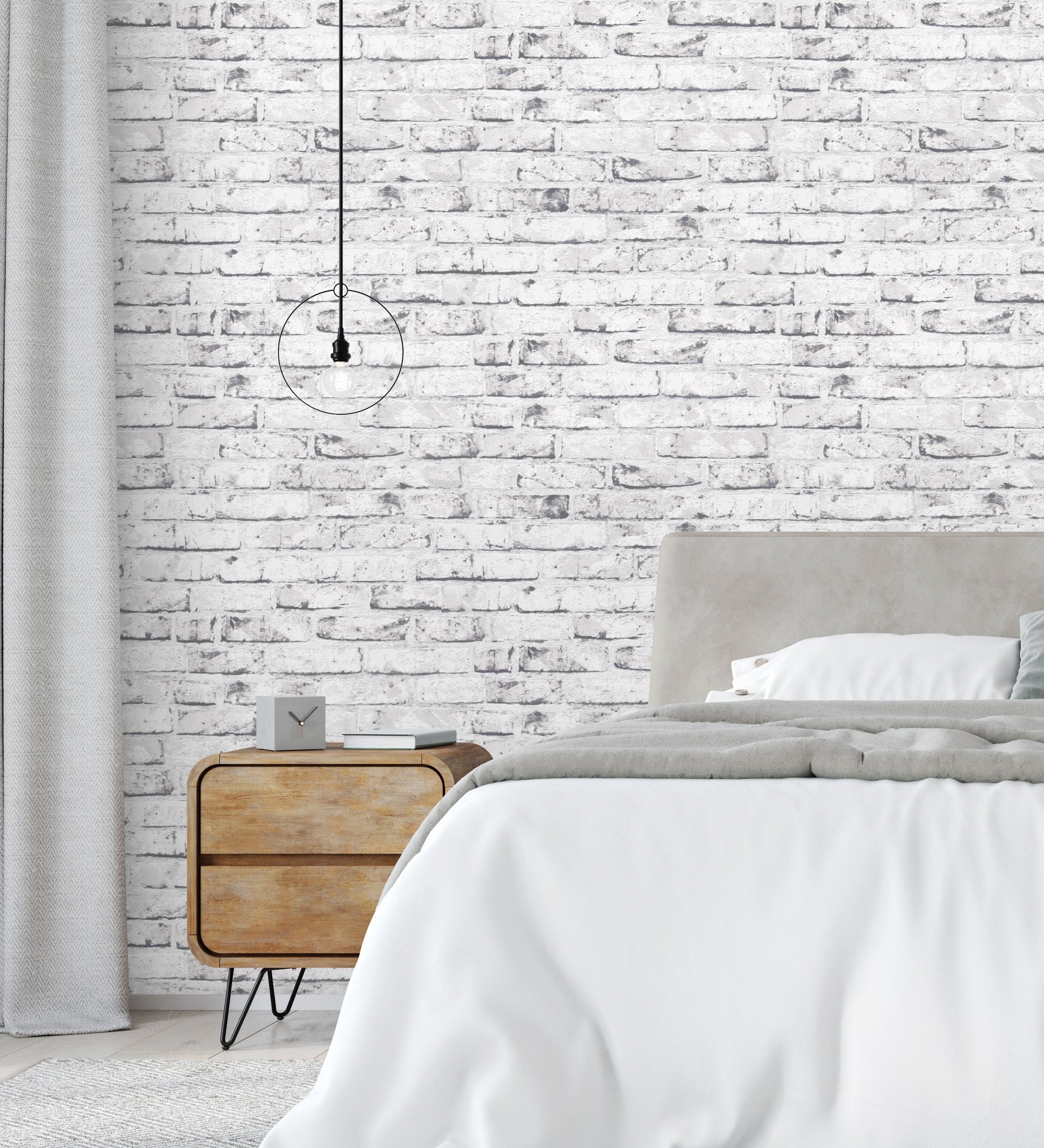 Papel pintado vinílico lavable efecto ladrillo vintage blanco y gris relieve 3D - Nevada 453171 de GAULAN - Rollo de 10 m x 0,53 m