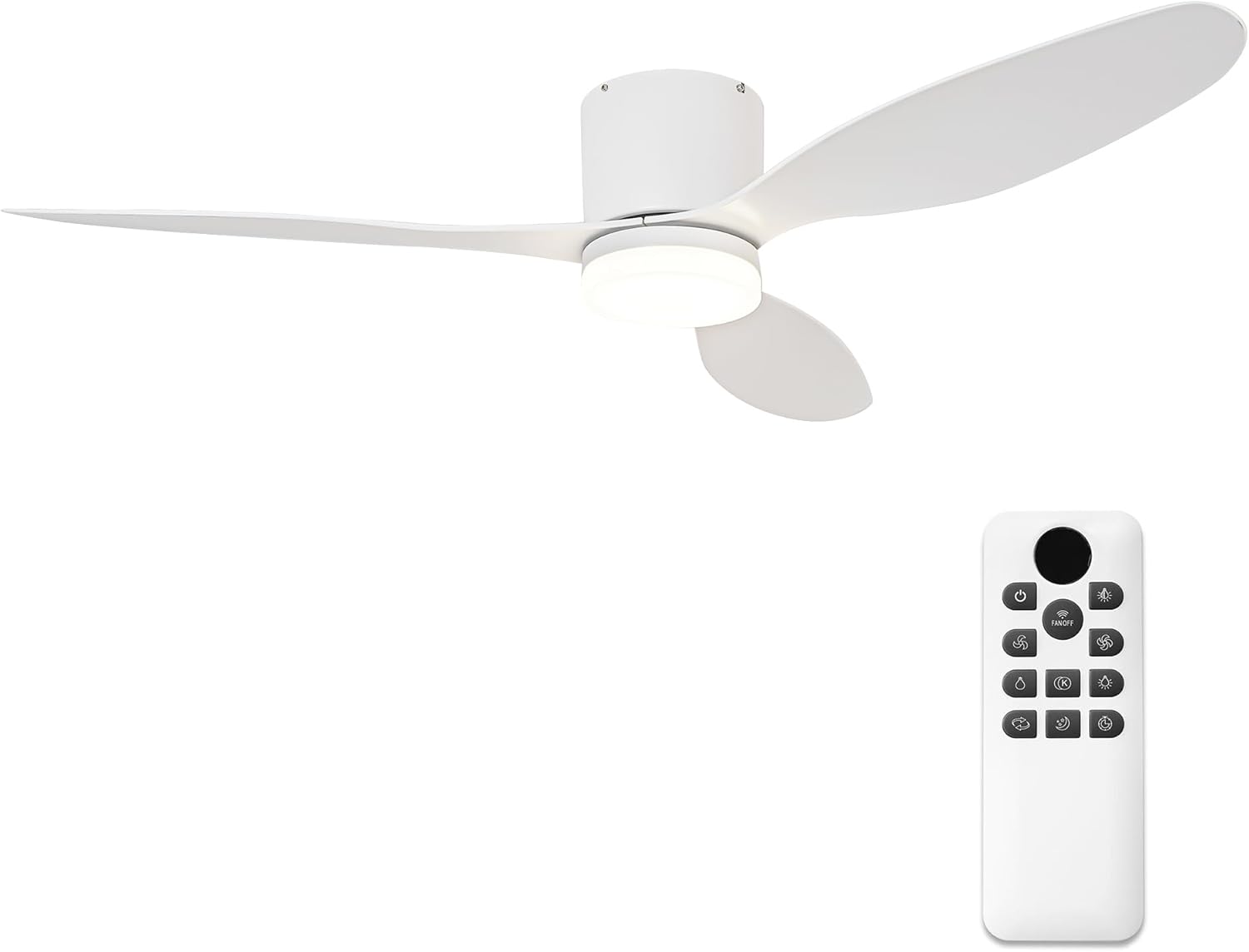 Parrot Uncle Ventilador de Techo ABS con Luz LED 24W, 6 Velocidades, 3 Aspas 132 cm de Diámetro, Función Verano-Invierno, Temporizador, Blanco
