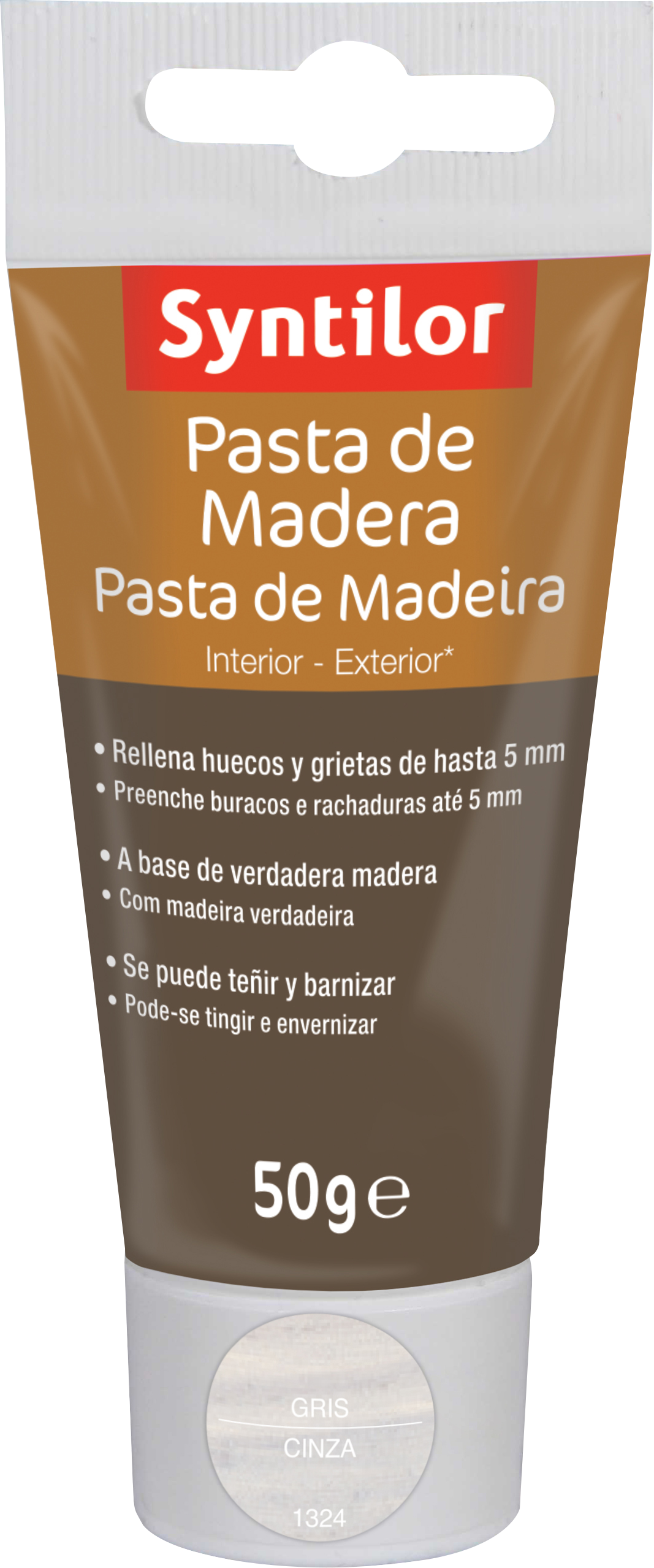 Pasta para madera de tono grisáceo indicada para rellenar agujeros pequeños y separaciones de montaje inferiores a 8 mm. Te permitirá recomponer una parte de un mueble o carpintería como ventanas, puertas y zócalos. Su composición con resina de altas prestaciones te permite aplicar fácilmente el producto, con ayuda de una espátula, y obtener excelentes resultados. Contenido: 50 gramos.