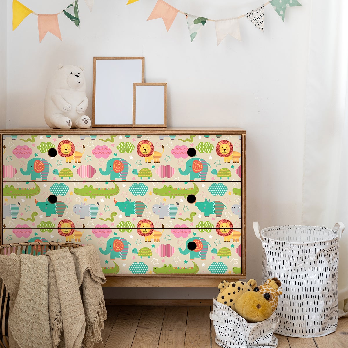 Más información Este enlace se abrirá en una nueva ventanaSuperficie cubierta para 1 cantidad: 0.54 metro cuadrado.¡Vinilos decorativos Imitación muebles para niños para interiores y decoración! Con los vinilos muebles para niños y este Pegatina muebles para niño animales africanos es possible transformar la decoración de su casa. Dimensiones de adhesivo muebles para niños : 40 x 60 cm 60 x 90 cm ¿Donde pegar estos adhesivos de paredes? Fácil de instalar y se adapta a todos los muebles !