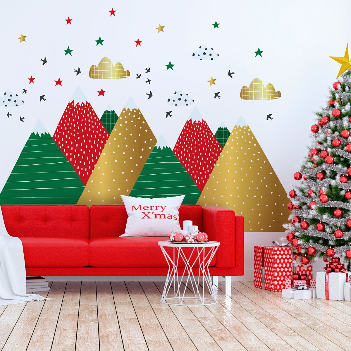 Pegatinas de montañas navideñas escandinavas - adhesivo de pared - revestimiento sticker mural decorativo - 50x75cm