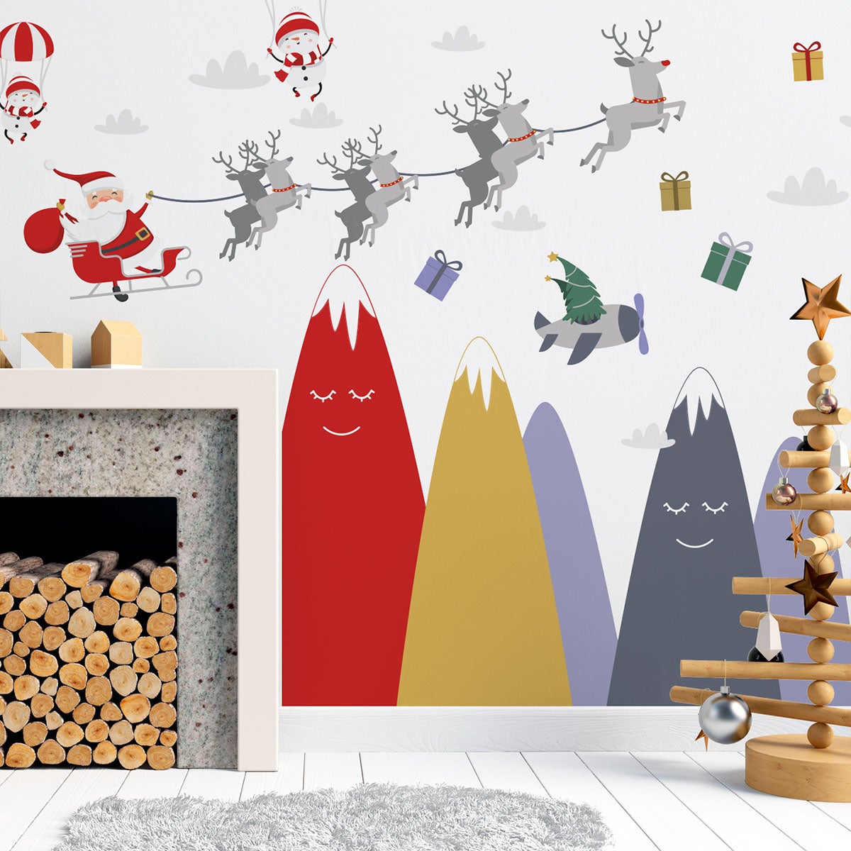 Pegatinas de Papá Noel en las montañas escandinavas - adhesivo de pared - revestimiento sticker mural decorativo - 70x105cm