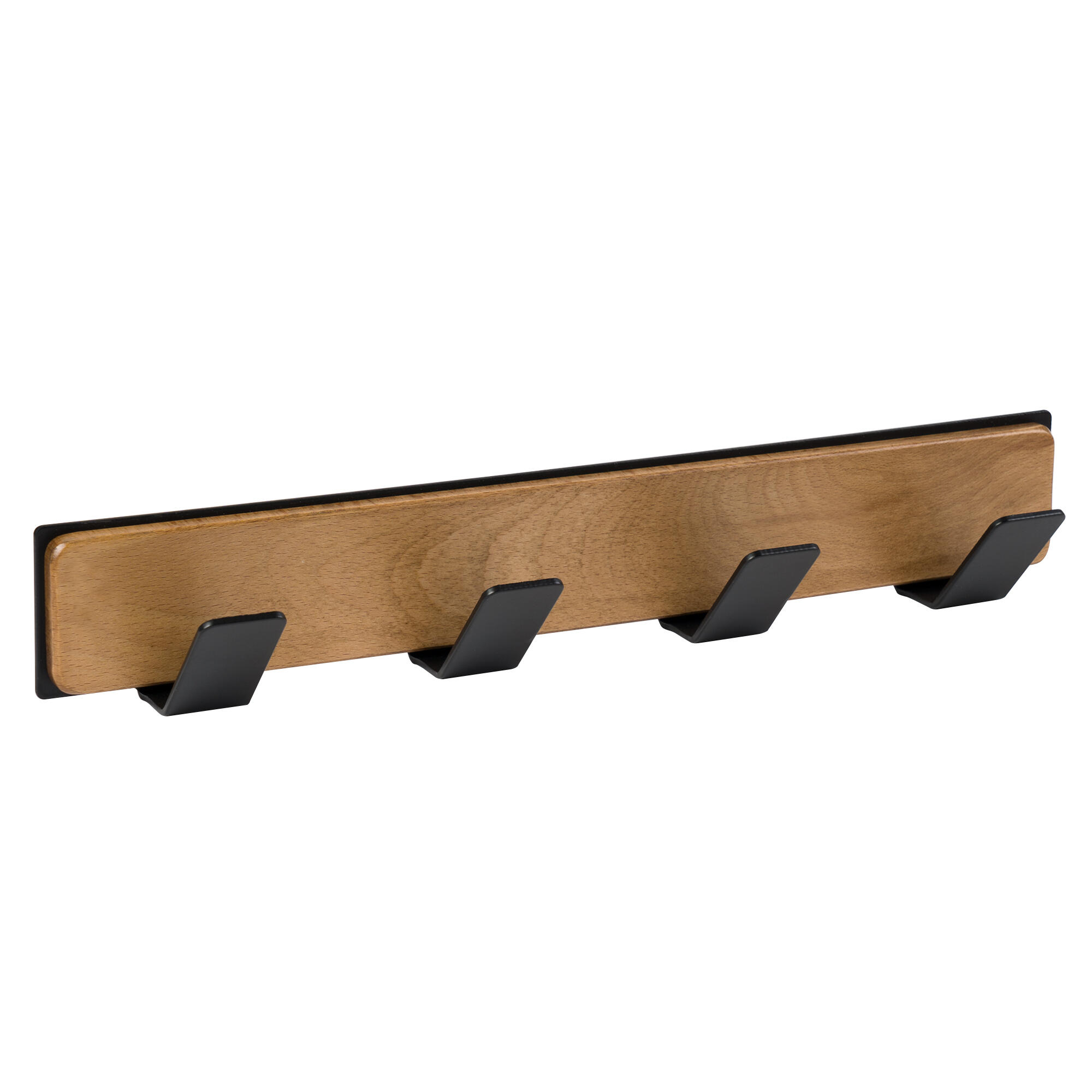 Perchero haya vieja con 4 ganchos metal negro mate para atornillar. Fabricado en España en madera maciza de haya con certificacion PEFC. Indicado para recibidores, dormitorios u otras estancias del hogar, ideal para colgar todo tipo de prendas o accesorios. Fijacion con tornillos incluidos