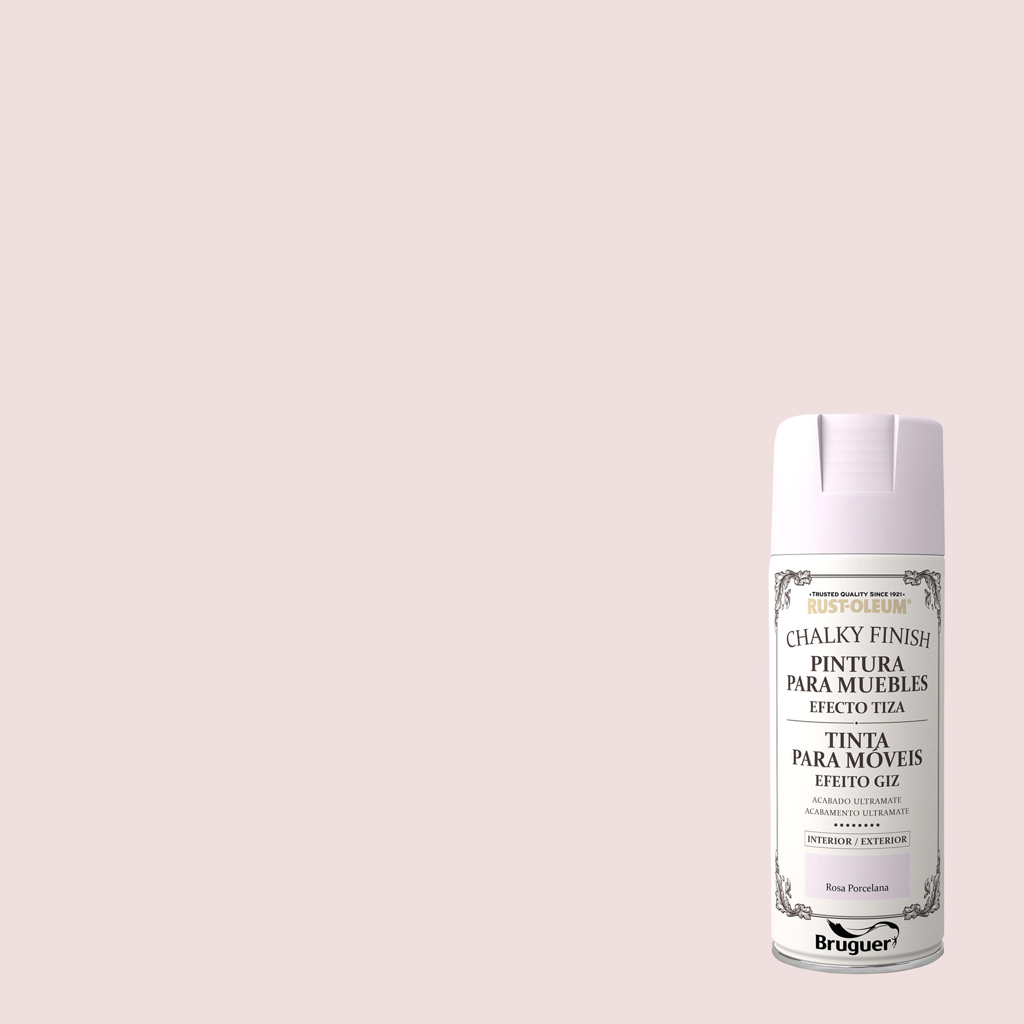 Pintura en aerosol de color rosa porcelana con acabado ultramate destinada a la renovación de la superficie de muebles tanto de interior como de exterior. Con su acabado efecto tiza podrás aportar un toque decorativo al mobiliario elegido para el cambio. La pintura a la tiza permite conseguir diferentes efectos decorativos entre los cuales se encuentra el decapado o el envejecido. Resulta perfecta para los lugares en los que busques un estilo más vintage. Su procedimiento de aplicación es en varias capas, no desprende olor y seca en 16 horas. Con cada bote de pintura podrás cubrir un total de 2 m² de superficie. Capacidad: 400 ml.