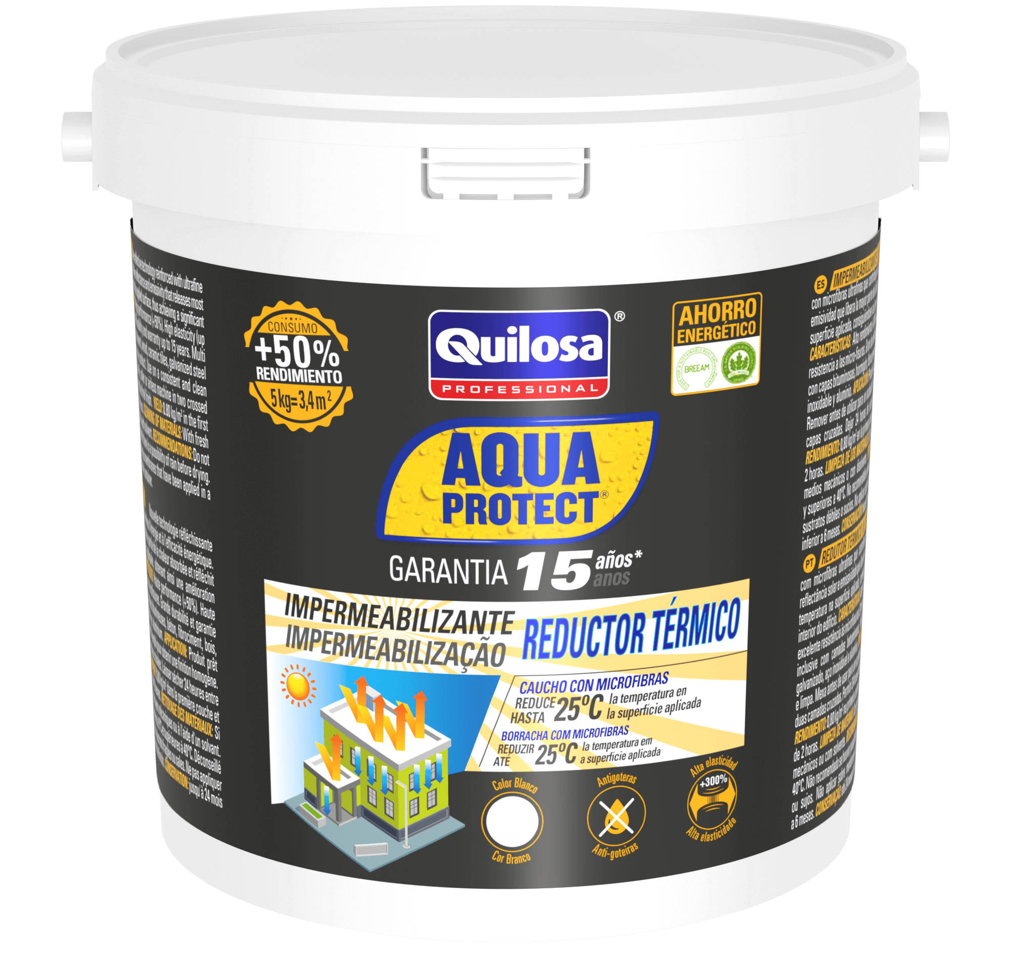 Pintura impermeabilizante exterior QUILOSA Aquaprotect reductor térmico olor blanco para hormigón 5kg. Agua.