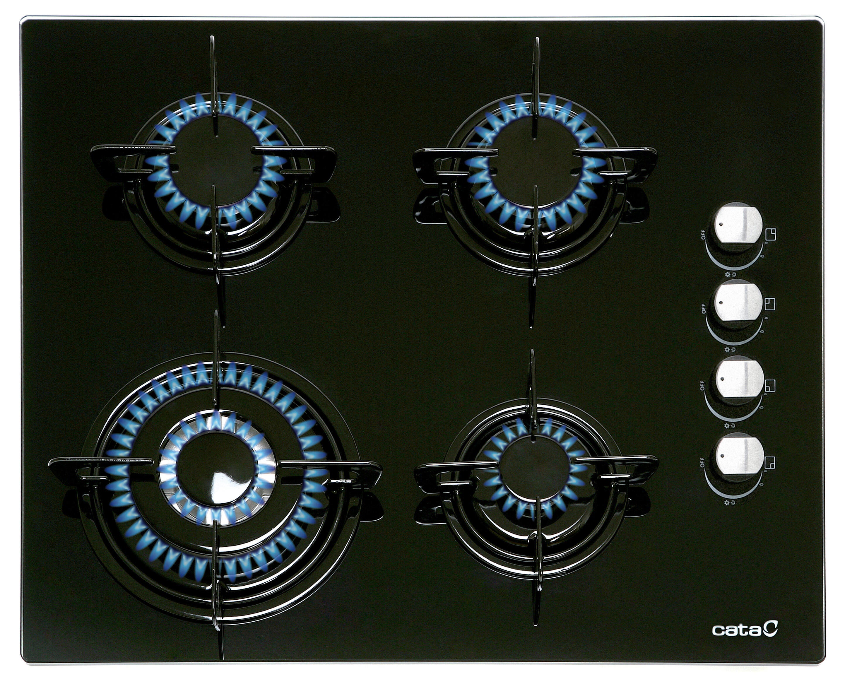 Placa de gas CATA CIB6031BK 4 zonas de cocción gas butano cristal negro con encendido integrado 60cm