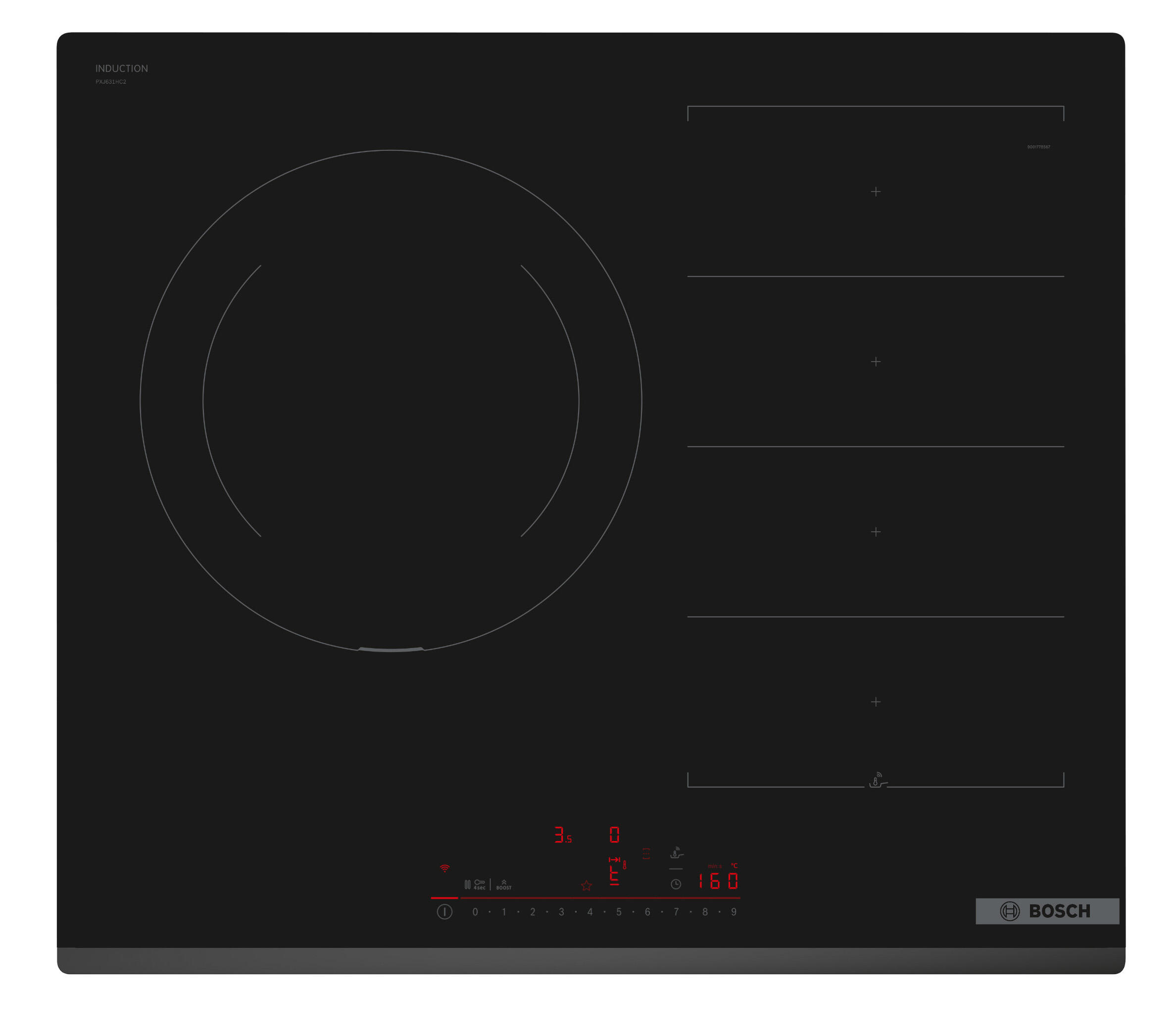 Placa de inducción BOSCH PXJ631HC2E con 2 zonas de cocción y zona flex 7400 W negro 60cm