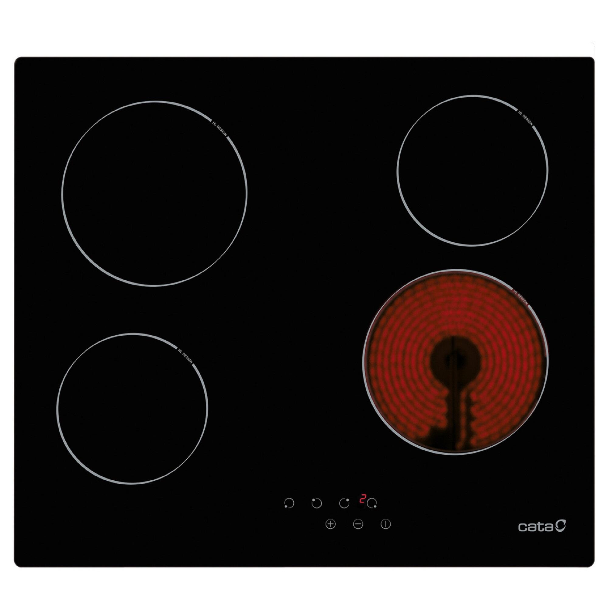 Placa vitrocerámica CATA TN 604/B con 4 zonas de cocción zona grande de 18cm 6000 W negro 60cm