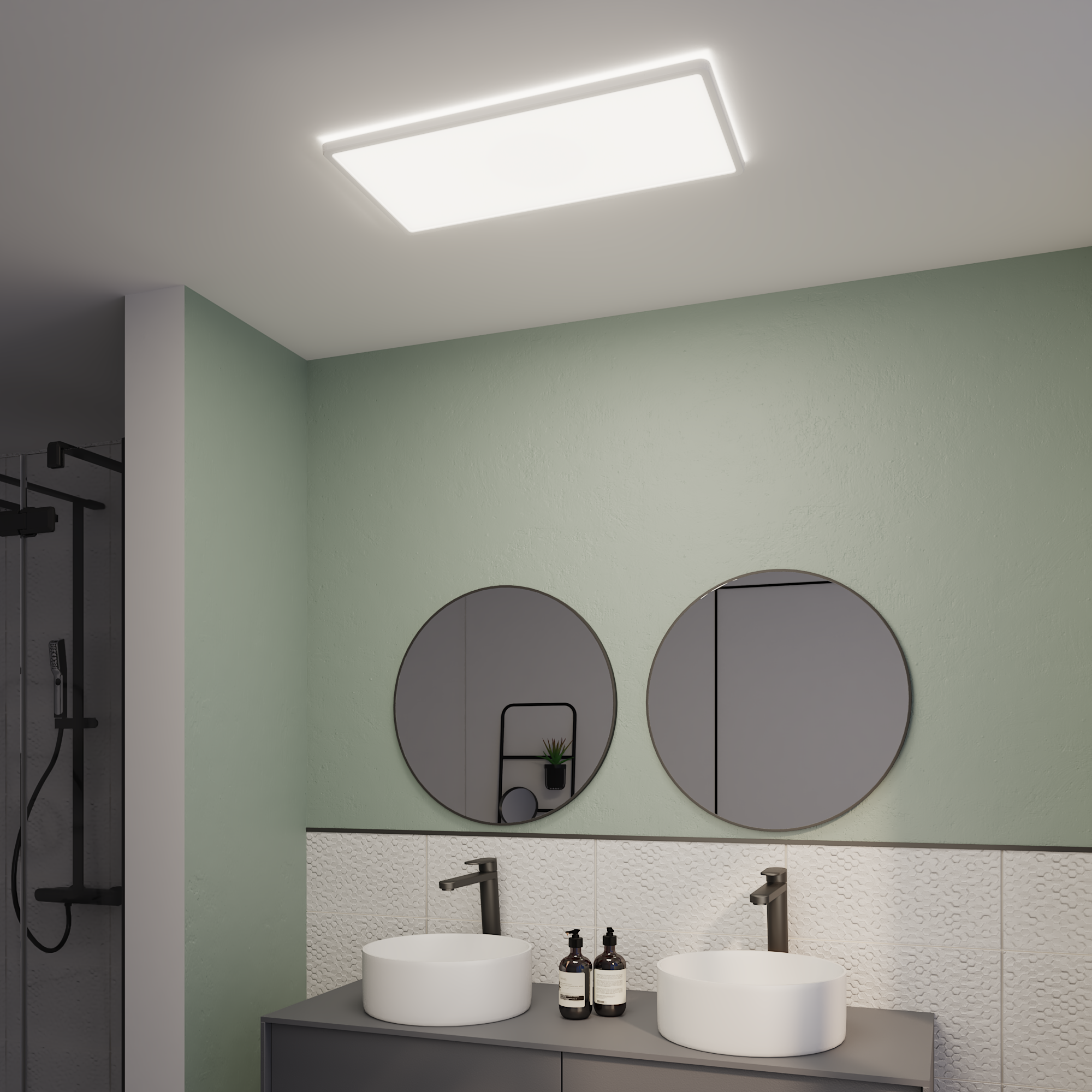Plafón Inspire Lano con forma cuadrada y acabado de color blanco. Cuenta con índice de protección IP44, 3400 lúmenes de flujo luminoso y 4000 K de temperatura de color, lo que se traduce en una luz de color blanco neutro. Ofrece 3 años de garantía.