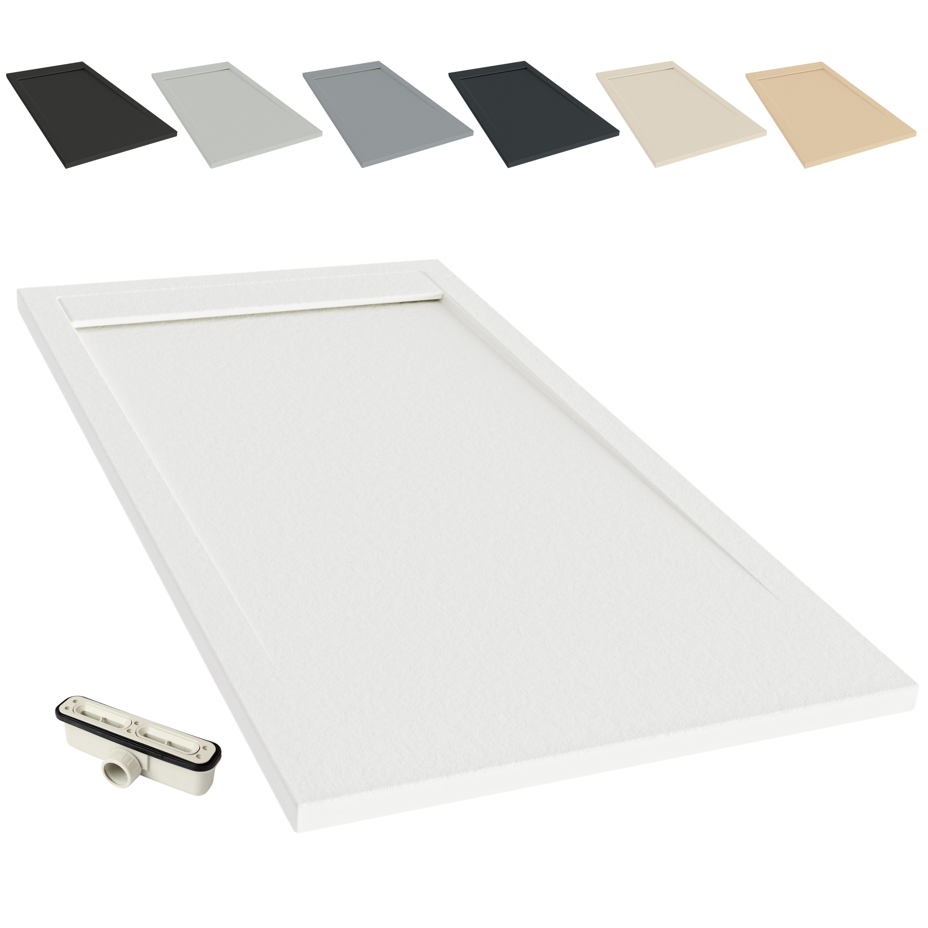 Plato de Ducha Modelo Venecia – Textura Pizarra y Extraplano – Blanco (RAL 9003) 90x140 cm – Incluye Válvula Desagüe y Rejilla