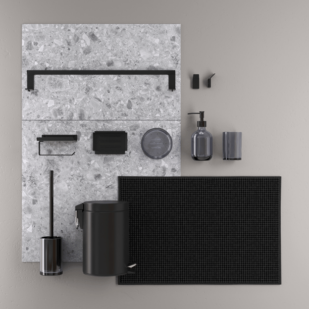 Portarrollos de baño de pared Sensea fabricado en acero con acabado de color negro. En Leroy Merlín encontrarás los mejores accesorios para completar tu baño. Ofrece 5 años de garantía. Medidas: 13,35 x 7,8 x 12,2 cm (ancho x alto x fondo).